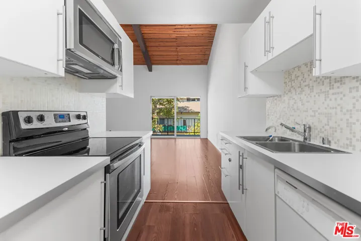 Experience contemporary comfort in this stunning 1 bedroom, 1.5-bathroom penthouse loft located in a gated resort-style community in the heart of Encino. This light-filled unit features soaring wood-slat ceilings, laminate and tile flooring, and an airy open-concept layout. The spacious upstairs loft bedroom includes an en-suite bath, vanity area, and a large walk-in closet, creating a private retreat. Downstairs, enjoy a stylish living area that flows seamlessly to an oversized balcony with tranquil views of the lush grounds perfect for relaxing or entertaining. Thoughtfully positioned on the quiet south side of the complex, this home offers peace and privacy, along with access to top-tier amenities including a pool, spa, tennis courts, gym, and rec room.Unit also includes 2-parking spaces and central air and heat.