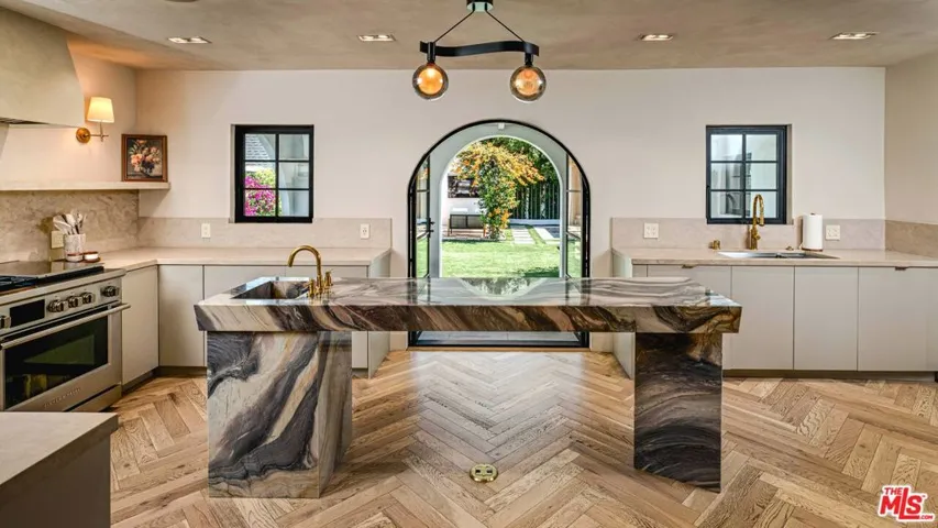 Welcome to this timeless 4-bed, 5-bath Spanish villa, just minutes from Hancock Park. Thoughtfully designed with plastered walls, graceful arches, and light-filled interiors, the home offers a seamless flow: a guest suite downstairs, three en-suite bedrooms upstairs, plus a versatile bonus room. The primary suite is a true retreat with a spa-like bath and oversized walk-in closet, while the chef’s kitchen impresses with dual refrigerators, dual dishwashers, and top-tier appliances. Step outside to your private sanctuary complete with pool, spa, built-in BBQ, outdoor shower, fireplace, and TV perfect for effortless year-round entertaining. A fully integrated smart-home system puts everything at your fingertips, blending authentic Spanish charm with modern convenience in one of LA’s most coveted locations.