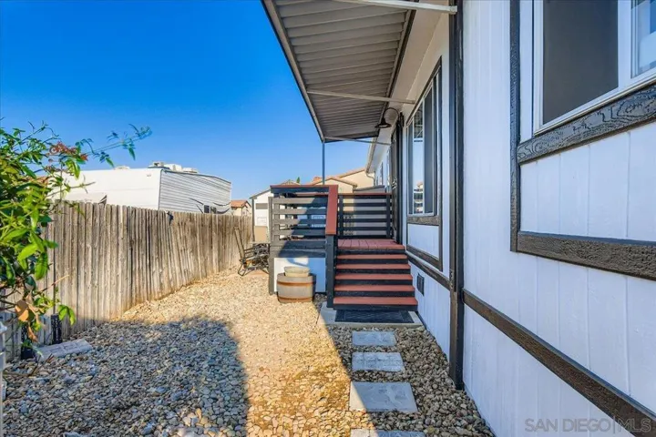 Fully remodeled and move-in ready, this stunning 3-bedroom plus BONUS ROOM, 2-bath home offers nearly 1,500 sq. ft. of upgraded living space in one of Santee’s most desirable all-age mobile home communities. Inside, you’ll find vaulted-style ceilings, a large skylight, recessed lighting throughout, and a cozy fireplace in the spacious open-concept living area. Fresh interior and exterior paint and new luxury vinyl plank flooring create a bright, modern feel. The upgraded kitchen is a show stopper with features that include natural granite countertops—including a custom island—stainless steel appliances, sleek cabinetry, modern fixtures, and plenty of storage. The oversized primary suite offers a custom walk-in shower, dual-sink vanities, and elegant finishes. A large bonus room provides flexible space for a home office, playroom, or whatever your preference. Upgrades include a new HVAC system, new roof, dual-pane windows, updated plumbing, tankless water heater, and two outdoor storage sheds. Outside, enjoy a low-maintenance backyard and a spacious side yard ideal for gardening, dining, or simply unwinding, with guest parking nearby. Set in a rent-controlled, well-maintained community with a pool and clubhouse, this home is walking distance to parks, trails, shopping, dining, and schools. Stylish, spacious, and fully updated—this home truly has it all!