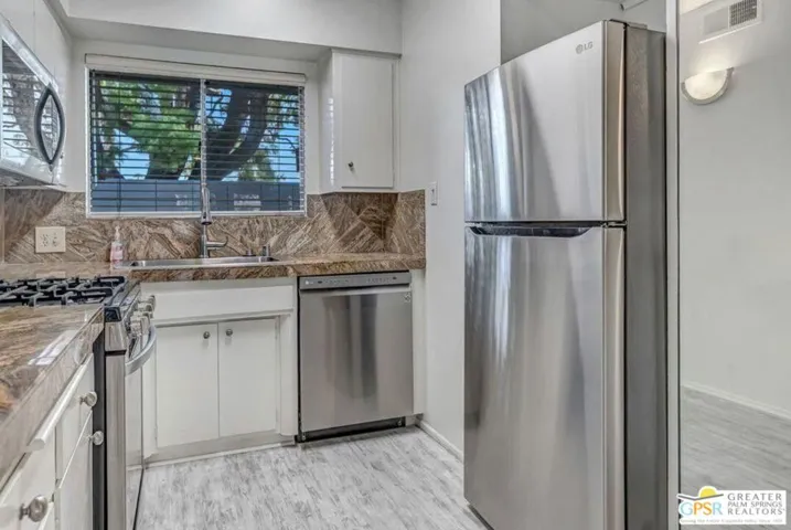 Resort-style living in the heart of Palm Springs! This unfurnished 2 bedroom, 2 bath single-level condo offers the perfect blend of mid-century charm and modern comfort. Located in the historic Desert Lanai community designed by renowned architect Charles Du Bois and built by the Alexander Construction Company you’ll be surrounded by the timeless style that makes Palm Springs famous. Inside, the condo features granite tile countertops, stainless steel appliances with a gas stove, wood-look vinyl flooring, tiled bathrooms, and ceiling fans throughout. Two patios provide outdoor living options: one with a pool view and another more private space to relax. Covered parking and storage are included. The beautifully landscaped grounds showcase a sparkling pool framed by breathtaking mountain views, creating a true desert oasis. All just minutes from downtown, the Convention Center, and Spa Casino where dining, shopping, and entertainment are right at your fingertips. Rarely available in Desert Lanai II don’t miss the chance to call this iconic Palm Springs community home!