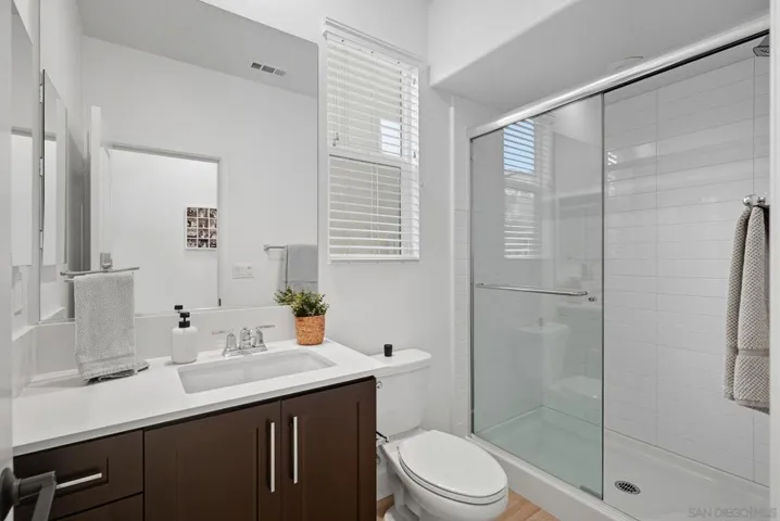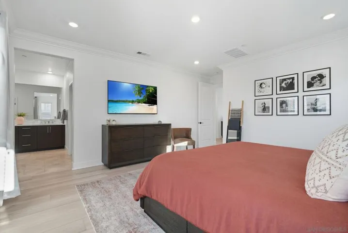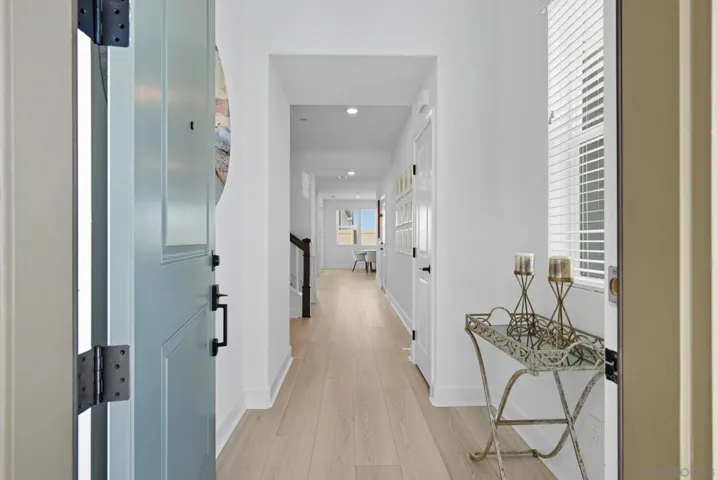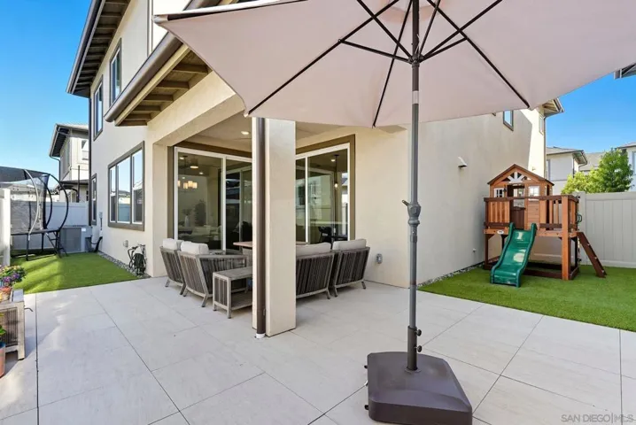 Built in 2022, this stunning 4-bedroom, 3-bathroom home in the highly sought-after Arlo community, offers 2,493 sq. ft. of modern living smart technology, and everyday comfort. Step inside to an open concept layout enhanced by Kent Oak luxury vinyl plank flooring throughout. A convenient downstairs bedroom offers flexibility for live-ins, in-laws, or overnight guests. The chef’s kitchen showcases stainless steel appliances, Biancone quartz countertops, and sleek smoke shaker cabinets. Everyday living is made simple with a WiFi enabled oven and dishwasher, washer and dryer, smart Rinnai tankless water heater, water softener, and Flo by Moen smart water monitor. Designed with luxury and efficiency in mind, it boasts OWNED solar, EV charging, and a full smart home system with WiFi-enabled appliances, Ring security with door and window sensors, Eero mesh WiFi, Ethernet wiring to every room, and programmable smart light switches. Custom touches add warmth and character, from the built in fireplace and TV wall in living room to the playroom cabinetry, a custom glass partition for aesthetics and safety, designer wood trim accent walls, and a backyard finished with turf and pavers for easy entertaining. Located within the top-tier Poway Unified School District, families will enjoy a variety of incredible schools for kids to attend. At Arlo, enjoy resort-style amenities including a pool, spa, BBQs, lounge areas, bathrooms, showers, and a playground, with front yard maintenance included. Just a short walk to new retail with pilates, coffee, a wine bar, and even a salon.