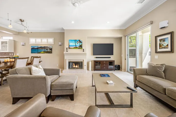 Located on the 2nd hole of the Palmer Private Course at PGA WEST this beautifully appointed 2-bedroom home PLUS office or 3rd BEDROOM offers 2,026 square feet of stylish living space. Enjoy your morning coffee as the sun rises and later in the day dive into relaxation in the refreshing pebble tech pool, or unwind in the spa as your private paradise awaits! This great room style home’s has a kitchen that is a chef’s delight featuring all stainless steel appliances, including a sleek double oven, generous counter space and lots of cabinet space. The refurbished cabinets, self-closing doors and drawers add a touch of elegance, while the kitchen skylight, custom lighting and LED can lights create the perfect ambiance throughout the home. The HVAC system, water heater, and toilets are a few of the recent upgrades. Ceiling fans in the bedrooms and plantation shutters offer a cool retreat on warm days, complemented by custom roll-down window shades in the living areas. The private outdoor space with pool and spa plus large retractable awning is perfect for entertaining guests. The pool heater pump and salt system have been replaced, making pool maintenance a breeze. The 2 car PLUS golf cart garage has new doors and openers. This wonderful home is sold FURNISHED per inventory.