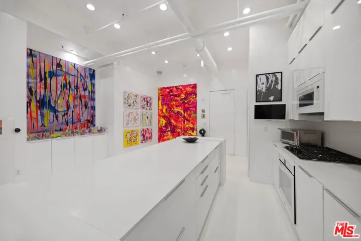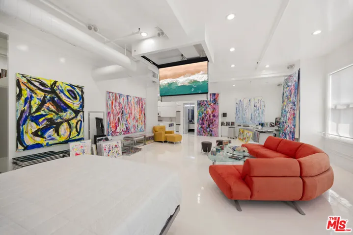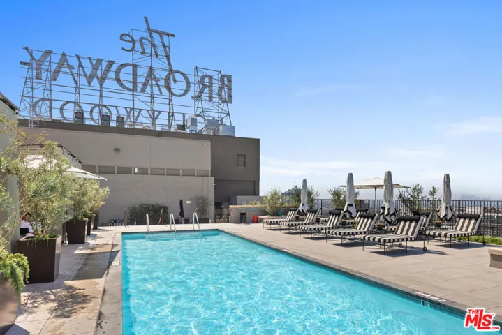 Experience a truly one-of-a-kind loft residence in the iconic Broadway Hollywood – one of Los Angeles’ most coveted historic luxury buildings. Not all square footage is created equal, and this expansive 1,700+ sq. ft. showpiece proves it. Reimagined and fully remodeled by multidisciplinary artist Dellamarie Parrilli, this turnkey home blends modern sophistication with timeless character. The light-filled open floor plan is enhanced by soaring ceilings, recessed lighting, and sleek contemporary finishes. A chef-inspired kitchen with high-end appliances flows seamlessly into the living space, while custom built-ins and massive closets provide both style and function. Retreat to the primary suite, featuring a spa-like en-suite bath, infrared dry sauna, and a retractable drop-down 75″ TV with an integrated surround sound system. Convenience is built-in with in-unit laundry and thoughtful design throughout. Residents enjoy full-service amenities rivaling a five-star resort: a rooftop deck with panoramic city views, sparkling pool, spa, private cabanas, fire-pit lounge areas, state-of-the-art fitness center, 24/7 concierge and security, and valet parking. Adding to its allure, this Mills Act-designated property offers substantial property tax savings, making it not only a lifestyle upgrade but also a smart investment. Perfectly situated in the heart of Hollywood, steps from world-class dining, shopping, and entertainment – this extraordinary home is waiting for you.