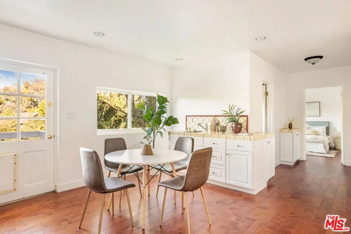 Striking Mid-Century Modern perched above the Boulevard with sweeping views showcases bright interiors with exposed beams and walls of glass. This South of Ventura, 4 bed, 3 bath, 2,875 SF stunner delivers Palm Springs vibes in the heart of the city. With an open floor plan that offers gorgeous sight lines and ease of use connecting, living, dining along with an updated chef’s kitchen that features quartzite counters, subway tile, wood cabinets, reverse osmosis drinking system, stainless steel Sub-Zero fridge, and Thermador range. This rare gem has vaulted ceilings throughout blending clean lines with warm natural finishes. An oversized primary suite with an updated bathroom. The downstairs can be used as an in-law suite, ADU or large entertainment space. Out front, a gated entry opens to a meticulously curated mature drought-tolerant succulent garden where you can enjoy gorgeous sunsets, setting the tone for the quintessential SoCal lifestyle. This private desert oasis is an elevated sanctuary that brings together design, comfort, and that indoor-outdoor flow perfect for Los Angeles living.