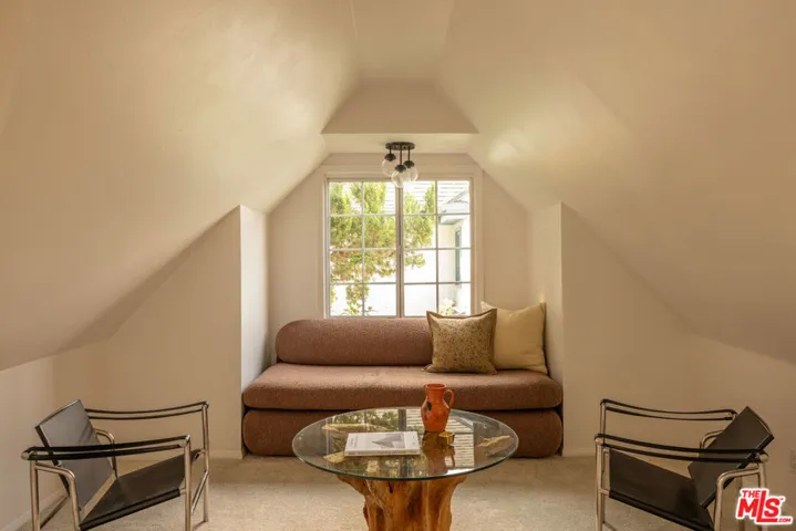 Located on a picturesque tree-lined street in prime Burbank, this 4 bedroom, 3.5 bathroom 1927 Tudor Revival residence offers architectural artistry and refined living. Set upon an expansive, gated lot with a large pool and back studio, this 3,060 sq. ft. home offers space, historic charm, and amenities for ease of living. Past the grassy front lawn, the restored wood front door is flanked by original beveled, leaded glass windows and opens to the home’s main living space, with chevron-patterned flooring extending throughout. Soaring vaulted ceilings greet you while natural light floods through the front oversized picture window. The formal living room, crowned by a commanding fireplace, creates an atmosphere of both intimacy and grandeur. The thoughtfully reimagined kitchen serves as the heart of the home, featuring custom oak cabinetry and quartz countertops. A generous center island provides bar seating, while a charming breakfast nook, framed by windows, offers a peaceful corner to enjoy the morning light. An adjacent formal dining room offers a large space for home entertainment. Two generously sized bedrooms are found on the main level, each bathed in abundant natural light with custom sliding barn-style closet doors. The bedrooms share a conveniently located full bathroom with a refined double vanity and bathtub, creating an ideal layout for family living or hosting guests. The second floor reveals a magical children’s bedroom tucked beneath a half-pitched ceiling. Adjacent, the primary suite offers a cozy ensuite den/office area, soaring pitched ceilings, and a spacious ensuite bathroom. The opulent backyard includes a large pool, grassy lawn, and a back studio, all surrounded by podocarpus hedging and fencing for privacy. A spectacular swimming pool takes center stage, artfully framed by two pergolas with wooden beams that create natural outdoor rooms. A converted garage sits at the rear of the property and has been artfully transformed into a guest suite or home office, complete with a half bathroom and pool views, an ideal space for work, creativity, or hosting. Ideally located, the property sits within a short distance of Burbank’s vibrant dining scene, boutique shopping, parks, and highly-rated schools. The tree-lined streets and neighborhood character provide both privacy and community, while conveniently adjacent to Los Angeles’ entertainment industry and cultural attractions. This refined Tudor home represents a rare opportunity to own a piece of Burbank’s architectural heritage. The generous lot size, thoughtful improvements, and prime location create exceptional value in one of Burbank’s most desirable residential enclaves.