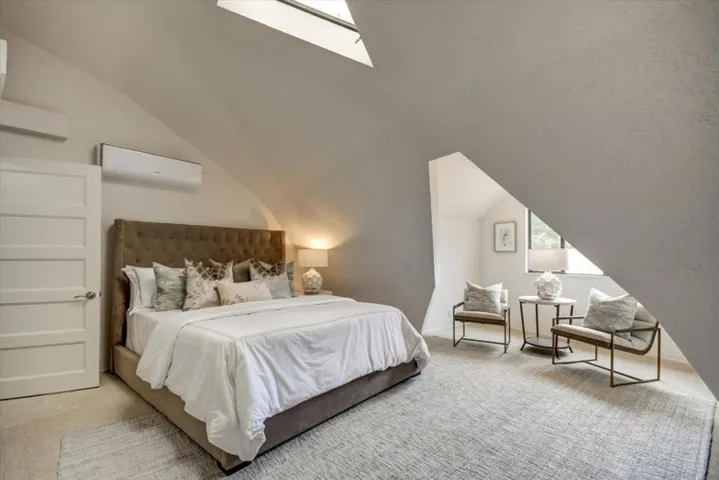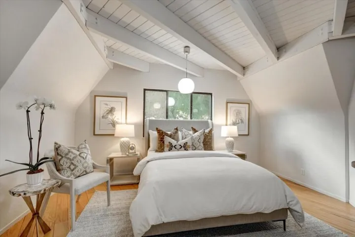 Set back on your own private estate drive is an extraordinary site of approximately 10 ACRES. Add a 5 bedroom home with a CONTEMPORARY VIBE and make Palo Alto Hills your home. Awash in light, the large windows fill this home with sunshine. Start with the expansive GREAT ROOM with high ceilings, Open kitchen w/stainless appliances features a Sub Zero refrigerator, Bosh dishwasher, and Jenn Air Cooking. Savor the views of the hills with peeks of the bay through your majestic trees from inside or step out on the balcony. Formal Dining offsets brick floors with windows all around again with exceptional views from every window. Two bedrooms and a bath on the main floor. Upstairs is the Primary Retreat with separate office and bath. Downstairs leads to two more bedrooms, a bath, a Media Room plus Family Room where you can step outside to more usable land. Did you notice all the land along the drive in for multiple activities and a future ADU, a Pool and Pool Pavilion. The City of Palo Alto is your resource for all that you can do. Top rated Los Altos schools and the short “drive a little” make this an impressive value.