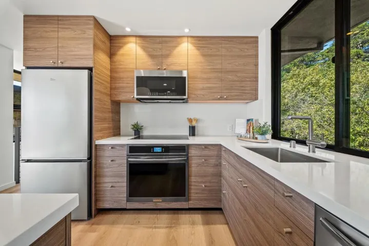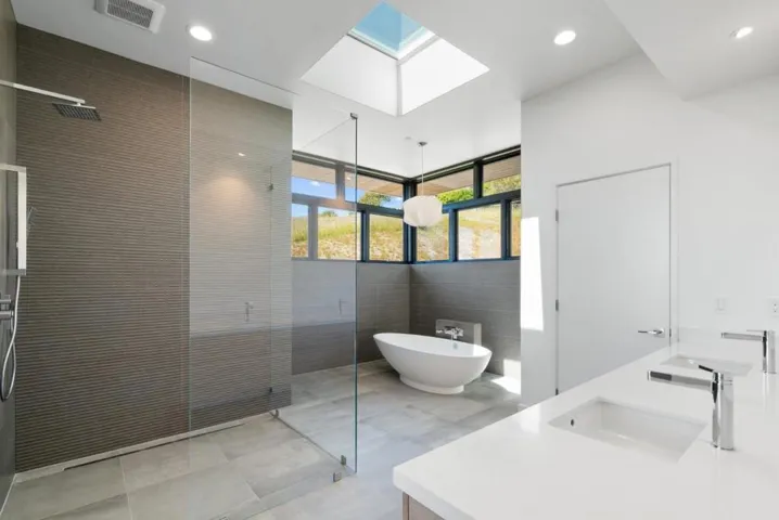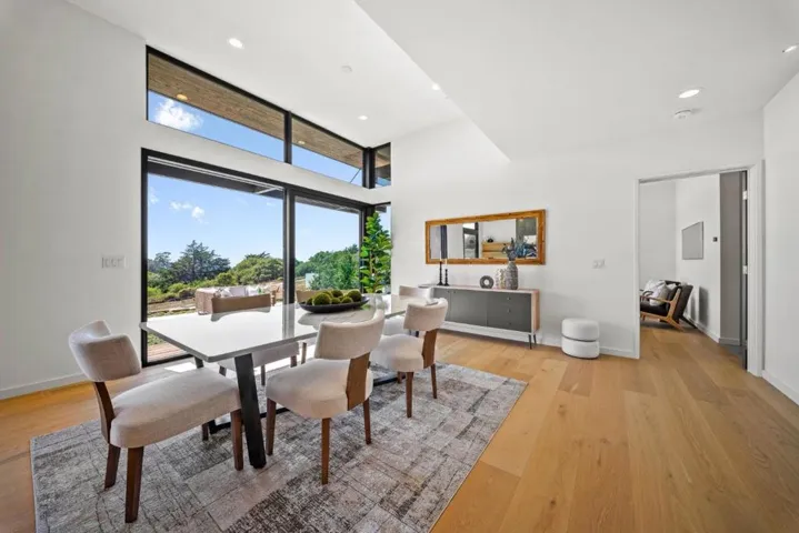 Expansive Ocean Views! BRAND NEW CONTEMPORARY MASTERPIECE /GUEST RESIDENCE DESIGNED BY LOCAL & AWARD-WINNING ARCHITECT, Frederic Lattanzio! This Masterpiece sets a new standard for living, nestled in a private community on a usable acre across from permanent open space that offers direct access to some of Monterey Bay’s most picturesque shorelines. This solar powered residence showcases a dramatic great room with 20′ ceilings, expansive windows/sliding glass doors, pristine white oak floors,& a striking gas fireplace. A chef’s kitchen with top-of-the-line appliances overlooking the dining area & opening to outdoor terrace/decks, blending indoor/outdoor living for the California lifestyle. Ground floor primary suites, featuring a cozy fireplace, Italian freestanding tub, & large walk-in shower & closet. Laundry room & powder room also on main level. Elegant staircase & a mezzanine on the 2nd floor, with 2 more generously-sized en-suite bedrooms, a separate office/media room w/ balconies, & even bigger panoramic ocean views. A detached 1 bed/1.5-bath guest house w/ stunning ocean views & its own 2 car garage mirrors main residence, offering an unparalleled retreat. Enjoy private beach living, world-class surfing, fine dining/shops, wine tasting, & breathtaking hiking trails!