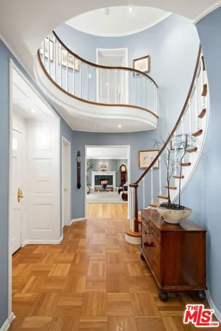 Nestled on picturesque Glenbarr Avenue in the heart of Cheviot Hills, this distinguished Traditional residence offers approximately 4,400 square feet of elegantly appointed living space on a 12,250-square-foot lot, with 5 bedrooms and 5 bathrooms thoughtfully designed for both intimate living and gracious entertaining. Grand-scale rooms and rich millwork set the tone throughout, from the sun-drenched living room anchored by a stately fireplace to the handsome gentleman’s library, where warm wood paneling, custom built-ins, a private bar, and fireplace create an inviting retreat. The expansive primary suite serves as a serene private sanctuary with a spacious sitting area and abundant natural light, while the gourmet kitchen is a true centerpiece, showcasing custom cabinetry, a striking blue tile and backsplash, and a central island beneath vaulted wood-beamed ceilings. The formal dining room awaits the many gatherings, celebrations and milestones it will warmly contain. An arced wall of custom windows and French doors flow seamlessly out to the garden terrace and outdoor dining area. Timeless architecture, refined detailing, and impeccably curated formal and informal spaces come together to present a rare once-in-a-generation opportunity to own a piece of classic Los Angeles elegance.