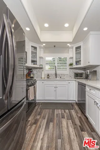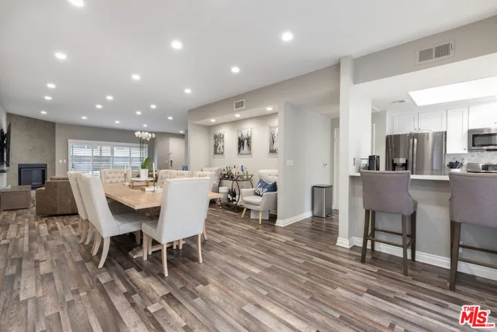 Discover the perfect blend of luxury, comfort, and location in this beautifully remodeled 3-bedroom, 2.5-bath townhome boasting more than 2,100 sq. ft. of spacious designer living. Ideally situated South of the Boulevard in an intimate 7-unit gated community, this stunning residence delivers the ambiance of a single-family home with the convenience and security of modern townhome living. Step inside to an airy open-concept floor plan accented by rich wood-toned flooring, custom Venetian plaster walls, and elevated designer finishes throughout. The chef-inspired kitchen features stainless steel appliances, sleek cabinetry, decorative backsplash, statement countertops, and a large breakfast bar perfect for entertaining or everyday living. The primary suite offers a private retreat with a spa-inspired ensuite, walk-in closet, and an exclusive bonus loft/office overlooking tree-lined and mountain views, ideal for working from home or relaxing in total serenity. Two additional bedrooms share a generous full bath, creating versatile options for family, guests, or flex space. Additional highlights include a private two-car garage with direct access, ground-level powder room, covered patio and rear balcony, high ceilings, in-unit laundry, plantation shutters, and abundant natural light throughout. The building also offers three guest parking spots within the secured underground garage. Enjoy an unbeatable location just moments from top-rated schools, the best Sherman Oaks dining and shopping, and quick access to the Westside or Valley commutes. With the potential to add your own private rooftop deck a feature several neighbors have already completed this home represents a rare opportunity to own a turnkey property in one of the most desirable neighborhoods South of Ventura Boulevard. Schedule your private showing today and experience this exceptional value in luxury townhome living.