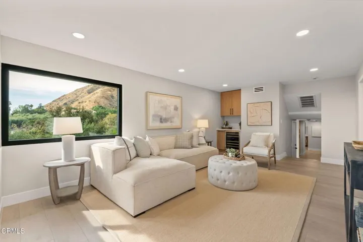Expertly remodeled and surrounded by natural beauty, 645 Oak Crest Ave is a hilltop dream home with stunning views and a serene setting. Set on a quiet cul-de-sac and totally removed from the hustle and bustle, here you’ll savor sun-drenched living areas, walls of glass that bring the outdoors in, and an expansive backyard perfect for both entertaining and play. The first of several showcase spaces is found in the sunken, window-wrapped living room. Here you’ll find a 15 ft cathedral ceiling and a dramatic floor-to-ceiling marble statement wall with a sleek linear fireplace. Glass doors open to the deck, creating a perfect indoor-outdoor flow. Nearby, the gorgeous kitchen seems plucked from a design magazine with its elegant quartz waterfall island, stainless appliances, and endless counter space. Whether you’re savoring a casual weeknight meal or a joyful dinner feast, the dining room’s glass doors offer lush views for an elevated ambiance. Tucked behind the kitchen you’ll find two spacious bedrooms sharing a luxurious hallway bath. On the opposite wing of the home, a spacious family room features a wet bar and invites board game nights, Superbowl viewing parties, and movie marathons. While the popcorn pops, enjoy some fresh air on the expansive balcony. At day’s end, the generous primary suite is ready to restore your balance with its spa bath where you’ll slip into the decadent soaking tub to unwind. Out back, a tiered deck features space for celebrations with dozens of guests. By day, lush plantings wrap the deck in serenity and by night, twinkling city lights turn this space into an enchanting escape. Offering turnkey convenience, beautiful design, and peaceful surroundings, 645 Oak Crest Drive is the complete package!
