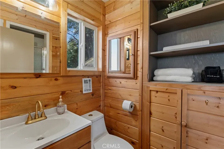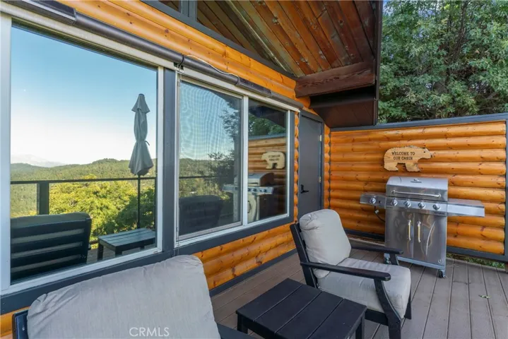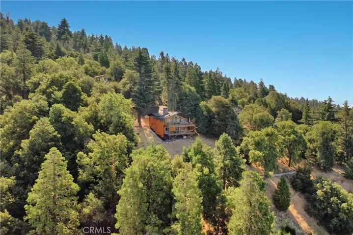 Experience the “Schoner Blick”(Beautiful View) of 816 Chamois. Arguably the best panoramic view of Lake Gregory, Mt. Baldy, Crestline basin and high desert the San Bernardino Mountain range has to offer! If you are dreaming of a quintessential upgraded mountain cabin, dream no further! This property exemplifies everything you’d imagine in a mountain getaway. This is a package deal offered turnkey furnished and INCLUDES the adjacent lake view vacant parcel(12,906 sq ft), for a total ½ acre of the nature’s utmost serenity. Upon entry of this 3 bedroom/2.5 bathroom retreat, you are greeted with an A frame North West facing wall of glass accentuating amazing unobstructed views. Entertain family & friends on a large upper Trex deck, the perfect party perch to enjoy July 4th fireworks over Lake Gregory. The entire interior is encased with knotty pine tongue and groove paneling. The exterior is wrapped in high quality log plank siding. Open concept main living area offers a soaring floor to ceiling brick fireplace, indoor BBQ chimney, and vinyl wood flooring throughout. The entry level master bedroom & lower level den also include their own fireplaces, for a total of 3 fireplaces. Every nook and cranny of this cabin is appropriately used for ample storage top to bottom. Since the sellers acquired the property in 2024, they put the icing on the cake through: new furnishings and decor, new tile flooring in bathrooms, created a level kiddo play area, cut a nature trail through vacant included parcel, new lighting & plumbing fixtures, 30 amp sub panel, added a pool table in garage/gaming area and installed a soothing sauna on the lower rear deck. Additional upgrades completed by prior owner included: a composition roof, tankless hot water heater, HVAC system with A/C, Generac natural gas whole house generator, stainless kitchen appliances, Trex decking w/ glass railing, remodeled bathrooms and kitchen, added the 2 car garage & parking deck, interior/exterior siding, vinyl dual pane sliders and windows, custom solar shades + tint for wall of glass. Ample parking in driveway plus a parking deck over the garage. No cross through traffic here, located at the end of a quite San Bernardino County paved and maintained road. This stunning property is a licensed short term rental with 38 recent 5 star reviews on Airbnb. Treat yourself to the tranquil setting and breathtaking view you deserve, tour Schoner Blick today!