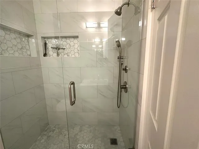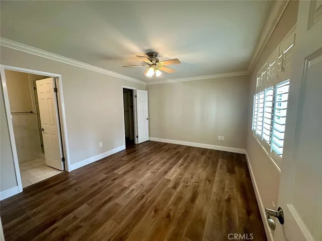 Both bathrooms have been tastefully updated with contemporary vanities and stylish tile work. All three bedrooms are equipped with ceiling fans and generous closet space, each with built-in organizers. The primary suite includes a large walk-in closet.