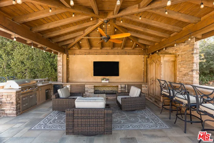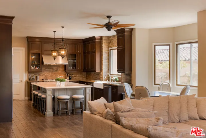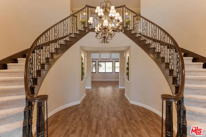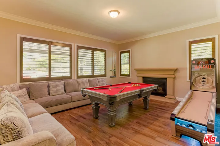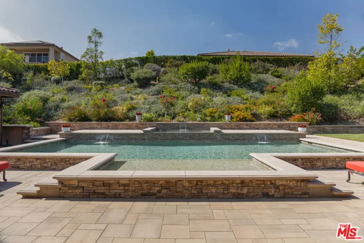 Welcome to 7305 Augusta Drive, a beautifully appointed home in the upmarket Masters gated community within the Moorpark Country Club, Moorpark’s most sought-after neighborhood. This modern Mediteranean residence, set over almost 5,000sf offers the perfect retreat for relaxed living and entertaining. The spacious, open-concept living areas feature high-end finishes, designer fixtures, and abundant natural light that highlight the home’s elegant style. The gourmet kitchen is a chef’s dream, with state-of-the-art appliances, a center island, and custom cabinetry ideal for hosting gatherings or preparing family dinners. With two double garages, a dedicated games room, and fully sound proofed sound studio (which the seller will convert back to an office upon request), this residence has it all. Upstairs the expansive premier suite boasts coffee bar, two walk in closets and a significantly sized bathroom suite. There are an additional 3 ensuite bedrooms upstairs and another ensuite bedroom on the fist floor. Step outside to a resort style private backyard, with 40′ pool and spa and pool cabana with full kitchen and bar, all set within landscaped gardens for tranquility and outdoor enjoyment. Whether you’re relaxing with loved ones or hosting friends, this outdoor space offers the perfect setting. Located in a prestigious community, this home is a minute from the renowned Moorpark country club, offering amenities such as golfing, fine dining, and social events. The convenient proximity to excellent schools, shopping, hiking, equestrian and outdoor recreational activities makes this location ideal for active lifestyles and family life alike.This exceptional property provides the perfect balance of luxury, style, and convenience a true haven that feels both refined and inviting. Your new home awaits.
