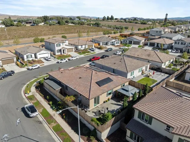 Price Improvement….Welcome to 2141 Wildflower Drive! Why wait for a new construction home with no landscaping? This beautiful 3-year-new home already has a finished yard and patio. Well maintained corner-lot home offers modern living in one of Hollister’s desirable newer neighborhoods. Featuring 4 spacious bedrooms and 2.5 bathrooms, the open- layout seamlessly connects the kitchen, dining, and living areas perfect for both entertaining and everyday comfort. The kitchen boasts a generous layout with plenty of counter space and cabinetry, flowing naturally into the main living area. Outside, enjoy a private patio that provides an inviting space for relaxing, dining, or gatherings. Energy efficiency is front and center with leased solar panels and two Tesla backup batteries, giving peace of mind and significant savings. With its prime corner location, newer construction, and thoughtful upgrades, this home blends convenience, sustainability, and comfort ready for its next owners to make it their own.