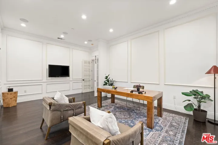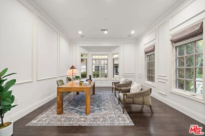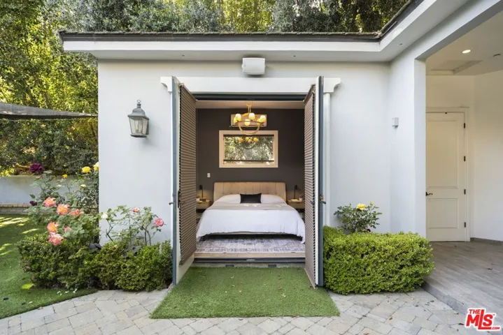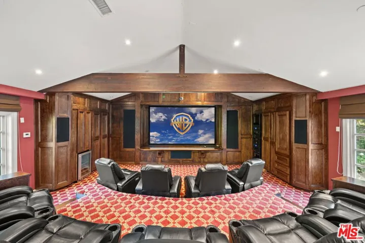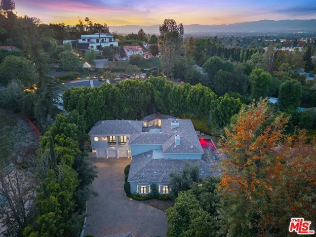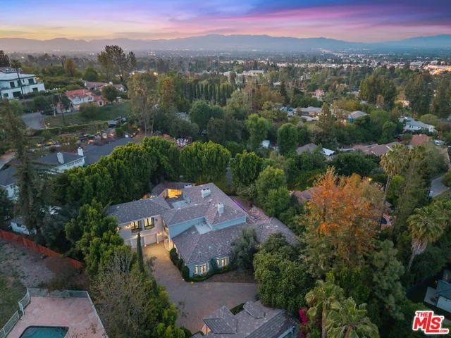 A rare offering of timeless French-inspired luxury, this stunning gated estate in prime Tarzana sits on an expansive 27,190 sq ft lot south of the Boulevard and features 7 bedrooms, 9 bathrooms, and three distinct structures: a grand main residence, a detached private movie theater house with bar and billiards, and a separate guest/pool house. A long private driveway leads to a dramatic two-story entry with soaring ceilings, a statement chandelier, and an open floor plan filled with natural light. The custom chef’s kitchen is outfitted with Carrara marble countertops, a massive island, walk-in pantry, breakfast bar, and professional-grade appliances. Designer details include Italian limestone and dark hardwood flooring, crystal chandeliers, carved fireplaces, and custom interior and exterior paint. The main level offers a formal living room and den with French doors that open to resort-style grounds with a pool, spa, outdoor kitchen, built-in BBQ, dining pavilion, chandeliers, flat screens, and an outdoor movie projector. Upstairs features a gym, soundproof music studio with ensuite bath and private balcony, and a luxurious primary suite in its own wing with fireplace, private terrace, walk-in closet, and spa-style bath with steam shower. The lower level includes a sophisticated office/library and three additional ensuite bedrooms. The guest/pool house sits off the turfed play area and fire pit, completing a private, entertainer’s paradise that seamlessly blends elegance, comfort, and California indoor-outdoor living.