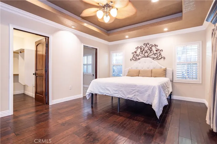 The primary suite is a true retreat, complete with a spa-like ensuite bathroom, a walk-in shower, and a large walk-in closet.
