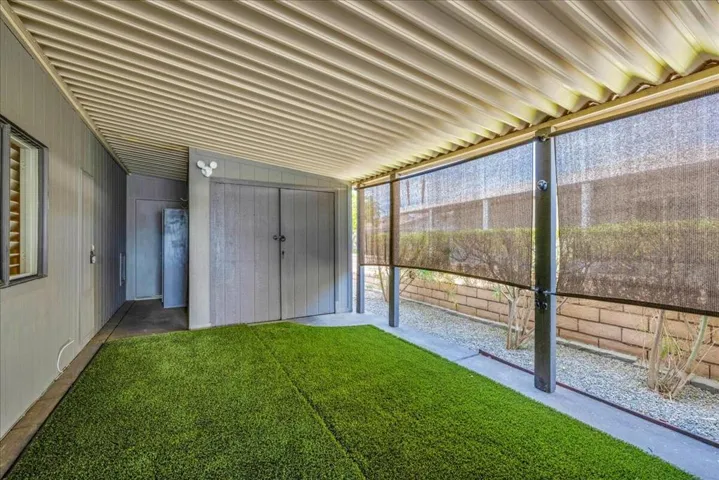 This inviting 1440 sq ft home has been thoughtfully updated over the years with comfort and practicality in mind. Enjoy the timeless appeal of granite countertops and easy-care tile floors, with newer light fixtures adding a fresh touch. Recently, a top-of-the-line $21,000 LENNOX HVAC system, including some new vents, was added to keep temperatures just right all year long. The kitchen features a new dishwasher, and the guest bathroom has a new toilet. Many windows are fitted with plantation shutters, which help keep the home cool during our desert summers and warm in winter, not to mention their elegant appearance and easy maintenance. The great room’s skylight brings cheerful natural light into the heart of the home, making gatherings and quiet afternoons equally pleasant. Start the day with coffee or wind down with a cocktail on your private patio, designed for peaceful moments or friendly chats with neighbors. An investment of $5,000 in professional landscaping which includes artificial grass and a sprinkler system, means the side yard is both beautiful and low-maintenance, offering green views without extra hassle. The spacious primary suite features a walk-in closet and convenient slider to the patio for easy outdoor access. There is a storage room with a sink and an AC unit, perfect for your storage needs. This home comes complete with all appliances, including a washer and a dryer, so settling in is truly easy. Each thoughtful upgrade was chosen to enhance daily comfort, making this a welcoming and practical choice for those who value both quality and simplicity in their next chapter.
