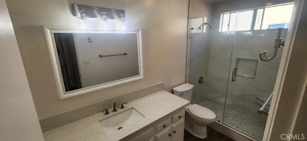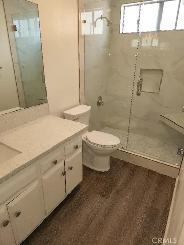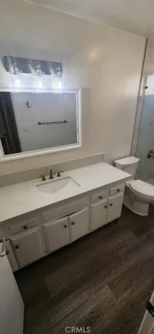 Model Like Remodeled South Coast Metro Area One Bedroom Condo in the Macarthur Village community . Features include ; Choice Upper Location with nice view of the neighborhood , Hardwood Style Vinyl Plank Flooring throughout , largest 1 bd floorplan in the community – aprx 740 sq ft , kitchen has white cabinets / stainless electric range / white quartz counters / dw , bath has a tiled walk in shower with bench & frameless door , bedroom has a walk in closet , living room has vaulted ceilings & balcony , dining area , parking consists of one carport with storage locker / 2 nd car unassigned uncovered space , gas / water / trash / gardener / sewer paid , ac / heat , 24 hour guard gated Macarthur Village community offers pickleball / 5 pools & spa areas / laundry rooms / 4 tennis courts / gym / clubhouse / barbeque & picnic areas / basketball court . One block to South Coast Plaza / Segerstrom Center / movies / coffee shops / world class fine dining & shopping , close to the 405 / 55 / 73 / & 5 freeways / John Wayne Airport , short drive to Newport & Huntington beaches