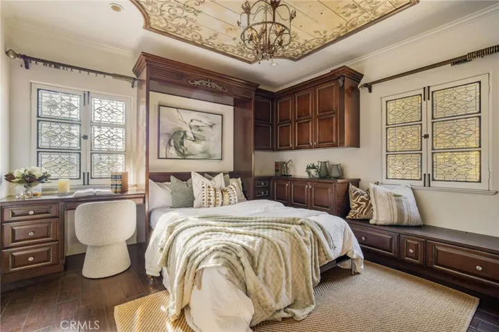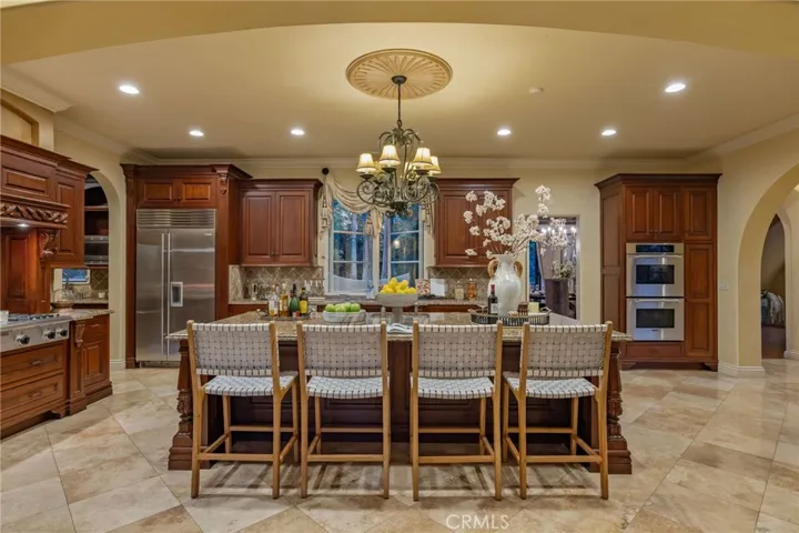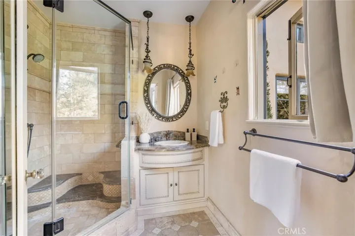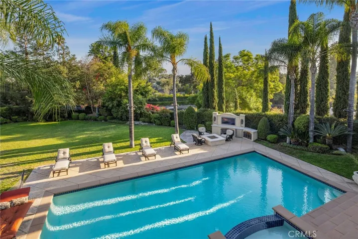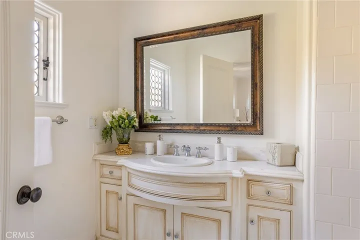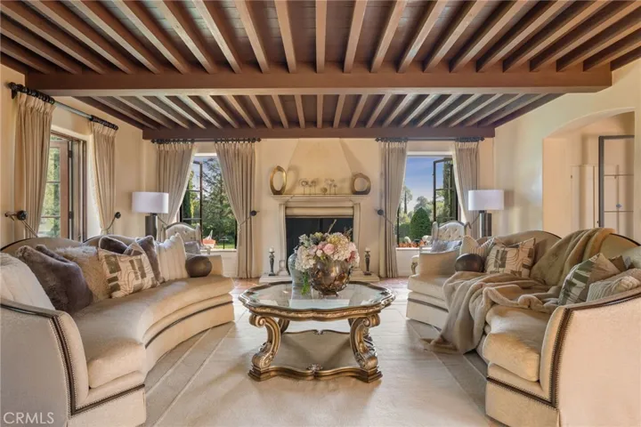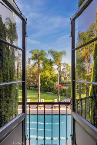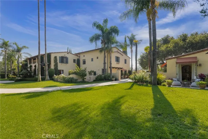 A rare courtyard estate in Pasadena’s prestigious Lombardy Road enclave, this 1931 Wallace Neff Mediterranean masterpiece blends timeless design with modern luxury across gated resort-style grounds. A sweeping tree-lined drive leads to a manicured façade framed by gardens and mature landscaping. Enter through the arched stone portico and wrought-iron front door into a grand foyer with century-old terracotta original Spanish tile flooring. The formal living room showcases a signature Neff fireplace, vaulted beamed ceilings, and arched windows and French doors overlooking the pool, gardens, and an outdoor living room embraced by vibrant bougainvilleas. The formal dining room opens to a terrace with mountain views and flows seamlessly into the entertainer’s kitchen. The chef’s kitchen features an oversized island, professional-grade appliances, and a separate wok kitchen—designed for everything from casual meals to grand-scale entertaining. Upstairs, the grand primary suite, which offers balconies with mountain and garden views, a fireplace, dual walk-in closets, and a spa-style bath with soaking tub and rainfall shower. An adjoining retreat functions as a gym, office, or bedroom. Three additional ensuite bedrooms complete the upper level, with a main-level ensuite for guests. The exquisitely crafted lower level is dedicated to leisure, offering a private theater, game room, billiards lounge, and a climate-controlled wine cellar. Outdoor living is unrivaled, with a full kitchen and bar pavilion connecting to the pool, spa, firepit lounge, and expansive lawn. Terraces, balconies, floor-to ceiling French doors and oversized windows throughout the property invite natural light and garden views at every turn. Modern features include premium indoor/outdoor surround sound, water filtration, Cat-5 wiring, and smart-home infrastructure. A separate guest house provides flexible space for extended stays, a home office, or multigenerational living. 3477 Lombardy Road is more than a home—it’s a extraordinary architectural offering where legacy design and California lifestyle converge.