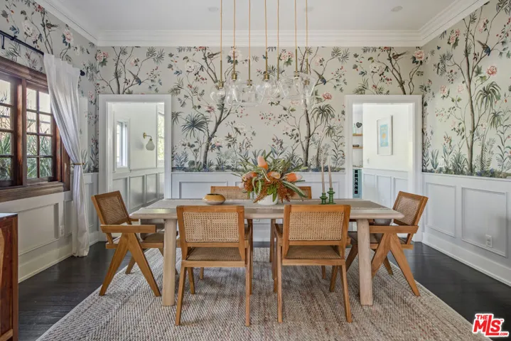 Stunning 1920s Spanish in coveted Hancock Park- Wilshire area, masterfully blending old-world romance with modern luxury. Set on a 6,500 sq ft lot, this reimagined home features rich hardwood floors, dramatic barrel-vaulted ceilings, arched entryways, and a carved fireplace. The formal dining room flows to a designer marble + DeVol kitchen with oversized island, stainless appliances, and French doors to the backyard. Three bedrooms include a primary with walk-in closet and baths with charming details like a clawfoot tub. Entertain in style with a new pool, BBQ, and lush landscaping. Guest house, EV charger, fresh interiors with custom wallpaper and wainscoting complete the package. Moments from premier dining and shopping in one of LA’s most sought-after neighborhoods.