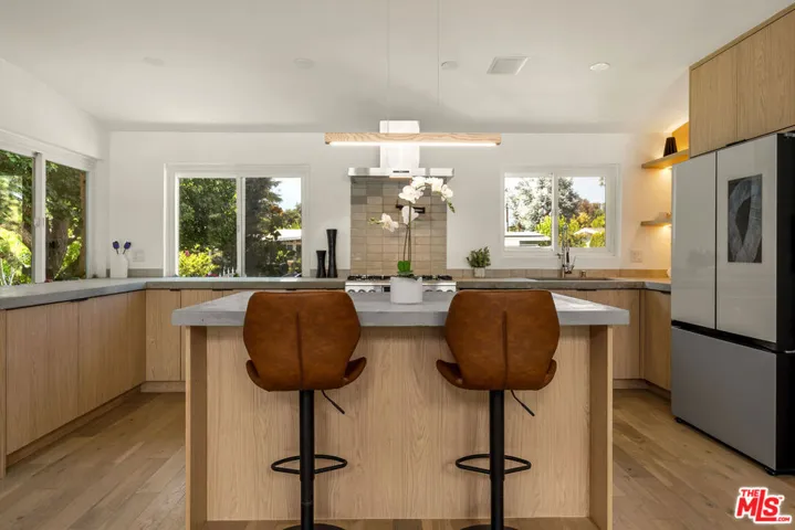 ***FREE ONE WEEK HAWAIIAN VACATION INCLUDING AIRFARE WITH PURCHASE*** Ask for details. Tucked away at the end of a serene cul-de-sac in the coveted Woodland West development, this iconic residence, originally crafted by renowned architect Charles Du Bois A.I.A., effortlessly blends timeless mid-century architecture with elevated modern luxury. Gated for privacy and framed by an enchanting, grassy front yard dotted with mature, fruit-producing trees, the property makes a striking first impression. Step through dramatic double doors into a home that honors its architectural roots while embracing today’s finest upgrades. Vaulted, beamed ceilings and Du Bois’s signature double-sided fireplace anchor the sun-soaked living spaces, where skylights flood the interiors with natural light and white oak floors flow seamlessly throughout. The heart of the home is a stunning custom chef’s kitchen featuring sleek white oak cabinetry, polished concrete countertops, luxury appliances and direct access to the garage for everyday ease. Meticulously upgraded throughout, the home boasts new electrical and plumbing systems, updated HVAC, EV charger port, a full security camera setup, whole-home audio with integrated speakers, and so much more. The private primary suite is a true retreat, complete with a large closet, direct access to the backyard, and a spa-inspired bath with a floating double vanity, soaking tub, heated floors, and a smart bidet toilet. Additional bedrooms are generously sized, with the Jack & Jill bathroom also offering heated floors and designer finishes. Step outside to an entertainer’s paradise: a resort-style backyard with a sparkling pool, lush lawn, mature fruit trees, and a charming, vine-covered outdoor dining area. Lounge beneath the covered patio, soak in the sun from the upper yard, or enjoy the garden-like serenity surrounding you. Perfectly located just minutes from the best of Woodland Hills, Calabasas, and Malibu with premier shopping, dining, houses of worship, and convenient 101 freeway access. Great schools including top-rated Calabash Elementary, with the option to waiver into Calabasas schools. A rare offering, curated by designer and builder Gregory Storm, where architectural significance meets luxurious Southern California living. Welcome home.