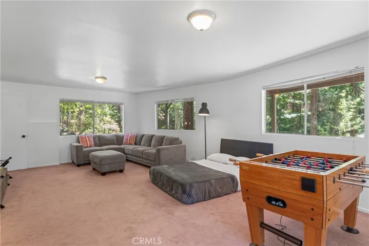 BACK ON THE MARKET! Buyer didn’t perform! Check the comps! Priced to sell! Super cool Prow style home with lake rights located on over 1/3rd acre with ALREADY built structures ready to convert to ADU’s. Ground level home over 2,000sf, 4bd/3baths, soaring beamed ceilings, walls of glass, rock fire place, and a wrap-around deck. Open-style kitchen with an island and direct access to the deck. The home is perfect for entertaining! Main floor offers 2 bedrooms and 1 full bathroom. Top floor has a loft/lounge area plus an extra large Primary suite with beamed vaulted ceilings and a separate bathroom. The lower level has a ginormous room that can be another Primary suite or family room with another bathroom. Direct access to the secured back yard, and a park-like setting with fabulous evergreens and a seasonal stream. Parking for at least 6 cars PLUS a HUGE custom built 3 story structure that offers a XTRA large 2 car garage, a huge enclosed area above the garage(possible ADU) and an expansive workshop underneath the garage(possible Junior ADU). Home is currently used as a part-time AirBnB and is approved to sleep 12 people comfortably. Tons of possibilities and truly a one-of-a-kind! Must see!