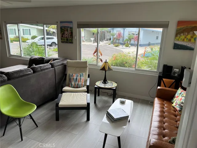 Beautiful remodel inside and out of a 2BR/2BA manufactured home in the highly popular 55+ community of Lemonwood! Gone is the paneling of the 70’s – new drywall throughout, new ceilings, lighting, bath fixtures, flooring, and window treatment. Exterior recently painted. Updated electrical and some plumbing. Huge kitchen with modern euro style cabinetry, quartz surfaces, an island AND a peninsula breakfast bar. If you love to cook, you will be impressed. Flex room with mini-split heat and A/C adjacent to the kitchen currently used as an office, but could be an exercise room or craft room. Living room has a soothing view of one of the pond fountains. Stunning gas fireplace with floor to ceiling ceramic tile surface will surely keep you cozy on those chilly winter mornings. Whole house water filtration plus a water softener; 220v plug in carport (30amp) for EV charging. Metal garden shed and two storage closets in carport. Awning posts in carport replaced with offset style to allow more room for vehicles. Privacy slats installed in carport. Home has earthquake bracing. Lovely front and rear garden with many low maintenance succulents and shrubs; artificial turf – perfect for your fur babies without needing a lawn mower. Back yard was enlarged by putting in a retaining wall made of rustic wooden railroad ties, and a newer vinyl fence installed with gates to keep your pets in and keep your space private. Patio for grilling, dining and relaxing off the side of the home. Lemonwood has a clubhouse, pool, fitness room, putting green, and walking path surrounded by mature landscaping and ponds connected by a small creek. Community entrance is gated for security 7pm-7am daily. Lot rent will be $1001/mo effective Jan. 1, 2026. No property taxes, home is on registration with HCD for under $100/yr. Sellers are offering the property fully furnished and turn key (excluding artwork and personal belongings) which makes it even more of a deal!