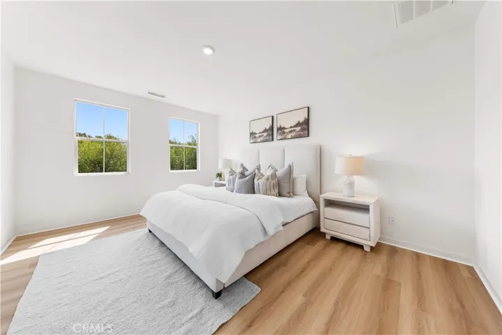 Experience refined living in this beautifully designed Baker Ranch residence featuring 3 bedrooms, 2.5 bathrooms, a private front yard, and the benefit of no Mello Roos. The light-filled interior showcases new luxury vinyl flooring, an open-concept great room, and a gourmet kitchen with quartz countertops, center island, gas range, stainless steel appliances, and modern cabinetry. Upstairs, the serene primary suite offers a spa-inspired bath with dual vanities, quartz counters, walk-in shower, and massive closet space. Additional conveniences include a dedicated laundry room, whole house fan, custom built-ins, and a direct-access two-car garage. Baker Ranch residents enjoy resort-style amenities: 10 parks, 8 heated pools and spas (including a quiet pool), hiking and biking trails, fitness stations, basketball, tennis, beach volleyball, bocce ball, baseball and soccer fields, fire pits, outdoor fireplaces, BBQs, clubhouses, hammocks, a covered outdoor kitchen, and the beloved Barker Ranch Dog Park.