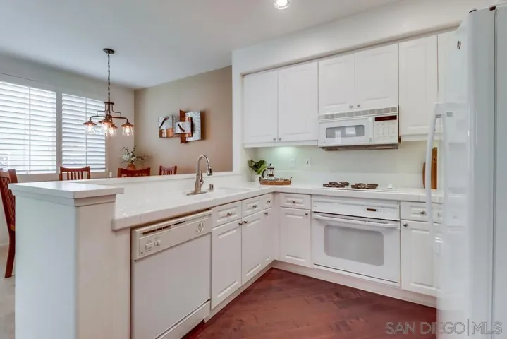 This stylish 2 bedroom, 2 bath condominium is located in the much sought-after Palo Alto community of Sabre Springs. The desirable ground level corner unit offers a premium location with an open concept layout, distressed plank hardwood floors, new carpeting, custom plantation shutters, ceiling fans, a cozy fireplace, and abundant natural light. Enjoy a spacious private patio, covered parking, and plenty of guest parking. The resort style complex features lushly landscaped grounds, a sparkling pool, spa, and fitness center. Ideally situated near top-rated schools, shopping, dining, parks, entertainment and all that San Diego has to offer. This is not to be missed!