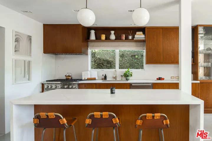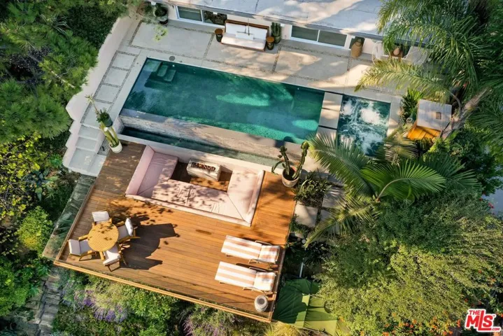 Introducing 2102 Ridgemont, a rare Mid-Century gem in the West Hollywood Hills. This one-of-a-kind, magical, single-story retreat sits at the end of a cul-de-sac, offering a stunning and creatively remodeled living space. Bathed in natural light, it evokes the tranquil spirit of Tulum and Bali, with expansive views of the surrounding hills and a peek at the city beyond. Gated for privacy, this serene sanctuary features original wood-beamed ceilings, a chef’s kitchen with Calacatta marble, Wolf appliances, and poured concrete honed floors. The primary suite features a private jungle-esque patio, while the lush exterior includes a saltwater pool, spa, infrared sauna, fire pit, and an exterior projector. This home has been meticulously redone with the finest of materials and craftsmanship. Located in the coveted Laurel Hills, near West Hollywood, Sunset Strip, Studio City and in the Wonderland school district, this home is a blend of Mid-Century charm and modern sophistication, perfect for entertaining or relaxing. An opportunity like this is truly rare, and the furnishings are available for purchase to complete the entirety of the experience.