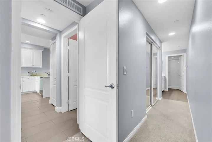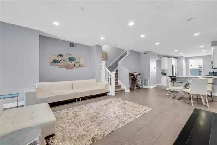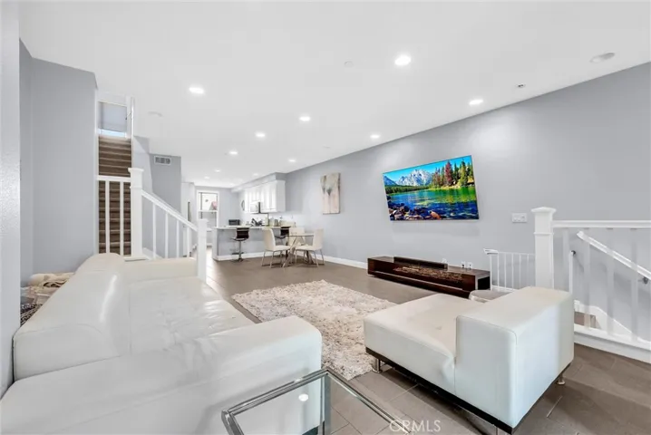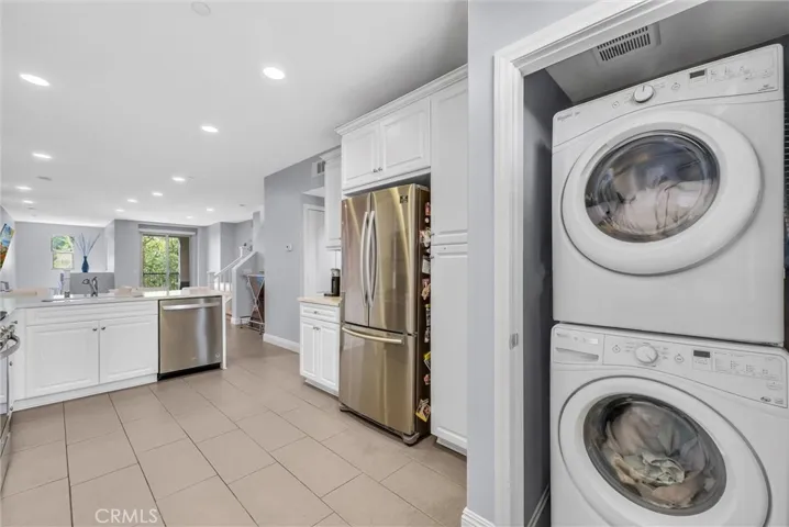 This gorgeous 2 bedroom 2.5 bathroom home has an open floor plan with living room, dining and kitchen all flowing together allowing for casual living. Large kitchen with quartz counter tops, stainless steel appliances, breakfast bar seating, and a generous amount of counter space for cooking and entertaining. Master bedroom is located on the main level for convenient living. Master bedroom includes large closet with mirrored wardrobe doors and a spacious master bathroom that boasts quartz counter tops, dual sinks and large walk in shower. Secondary bedroom is located on its own floor and lives like a second master which lends to private living. Additional upgrades include recessed lights throughout, laminate wood flooring in kitchen and living area, window blinds throughout, private balcony, 2 car garage with direct access, inside laundry. Amazing association amenities include Pools, Parks, Basketball Courts, Tennis Courts, Playgrounds, BBQ’s. Located in highly sought after school district. Washer, dryer & refrigerator included!