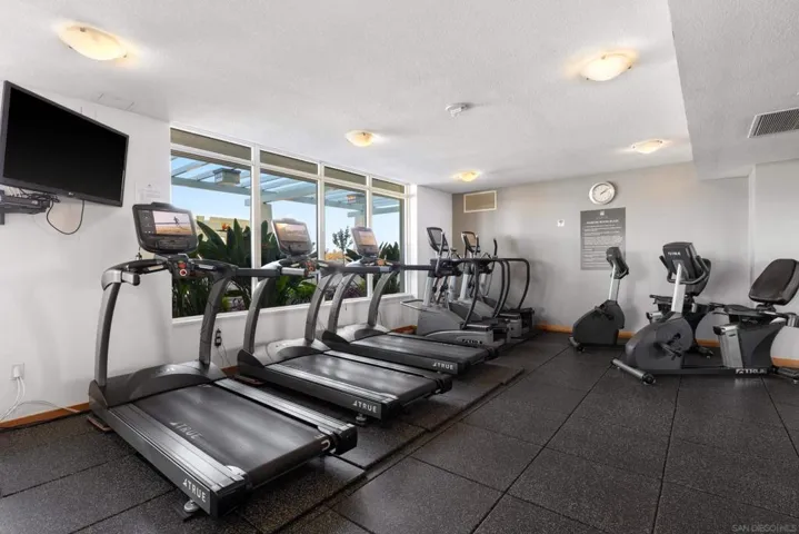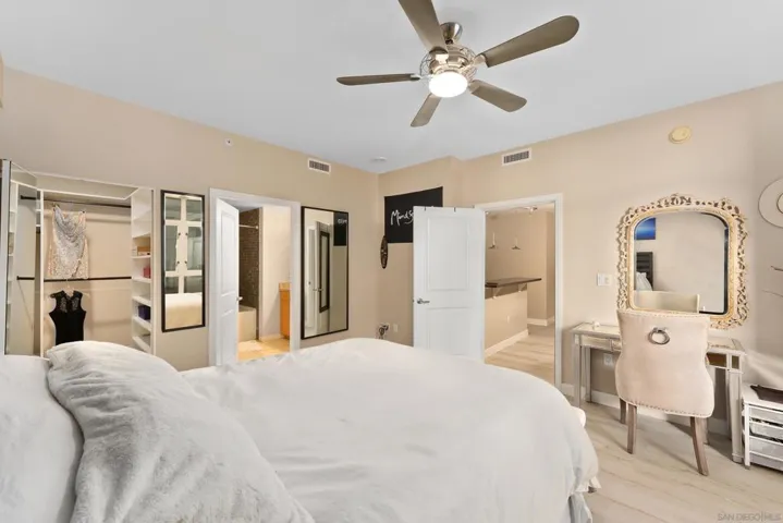 Bright, Quiet, and Updated—Refined Downtown Living at Discovery Welcome to Unit 701 at Discovery in Cortez Hill, a beautifully refreshed corner residence offering natural light, interior-facing tranquility, and modern style. Situated on the quiet side of the building, this 2-bedroom, 2-bath home enjoys peaceful courtyard and soft city views through floor-to-ceiling windows and French doors that open to a private balcony. Recent upgrades include brand new luxury vinyl plank flooring, fresh designer paint, and newly painted cabinetry that gives the space a clean, contemporary feel. The open-concept living and dining area features a cozy fireplace and a built-in mini wine fridge, while the functional layout includes an in-unit washer/dryer, assigned parking, and a separate storage unit. The spacious primary suite includes a generous walk-in closet with custom built-ins, and both bedrooms are comfortably sized with great natural light. Discovery offers full-service amenities with a recently remodeled rooftop pool and spa, upgraded fitness center with new equipment, stylish lounges, firepits, and 24-hour concierge and security. Residents also benefit from a professionally managed, well-established HOA and a yearly renewable guest street parking permit from the City of San Diego. Located in the peaceful, tree-lined neighborhood of Cortez Hill—close to Little Italy, Balboa Park, and downtown hot spots—this move-in-ready home offers the best of urban living with a sense of calm. Welcome to Discovery at Cortez Hill, where modern comfort meets refined downtown living in this beautifully updated 2-bedroom, 2-bath corner residence. Located on the 7th floor, Unit 701 features brand new luxury vinyl plank flooring, fresh designer paint, and a light-filled layout that offers both style and functionality. Enjoy floor-to-ceiling windows, a private balcony with peaceful city and courtyard views, and a split-bedroom design ideal for privacy or remote work. The spacious primary suite includes a generous walk-in closet with custom built-in shelving, perfect for streamlined storage. Discovery is a full-service luxury building offering a recently renovated amenities floor, including a resort-style rooftop pool and spa, upgraded fitness center with new equipment, stylish lounge areas, and firepits for relaxed evening gatherings. With 24-hour concierge, security, and secure parking, every detail is designed for convenience and peace of mind. Located in the charming, tree-lined neighborhood of Cortez Hill, you’re just minutes to Little Italy, Balboa Park, and the vibrant energy of downtown. Move-in ready with modern upgrades—discover elevated urban living at Discovery.