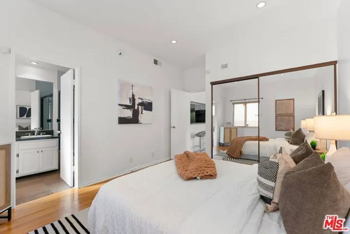 Welcome to this beautifully updated split-level condo in the heart of Brentwood. Situated in a boutique 4-unit building North of Wilshire, this light-filled 2 bedroom, 2.5 bath home offers a thoughtful layout and timeless style. The main level features an open living and dining area with ample windows that bring in natural light, a freshly painted interior, and wood floors that flow throughout the unit. The kitchen connects seamlessly to the dining space, making it perfect for both everyday living and entertaining. A spacious 2nd bedroom with its own en-suite bath completes the lower level. Upstairs, the private primary suite serves as a serene retreat with walk-in closet space and bathroom with soaking tub, separate shower, and dual sink vanity. Additional highlights include a guest powder room, in-unit laundry hookups, secure parking, and low HOA dues. With its prime location in a charming, intimate building just moments from Brentwood’s shops, cafes, and markets, this home combines comfort, style, and convenience.