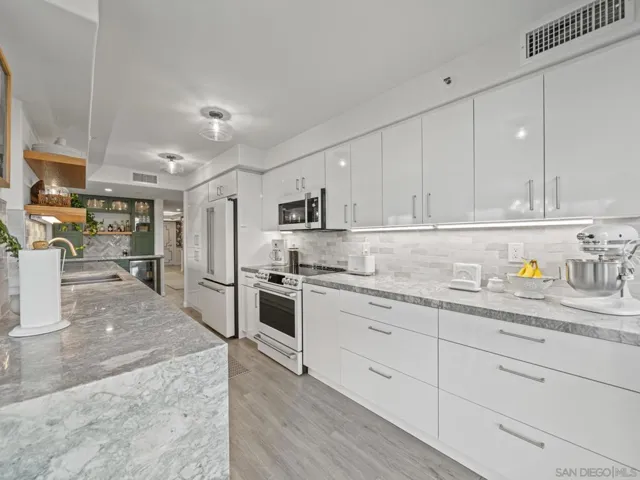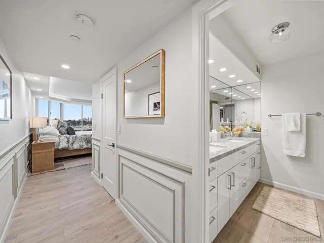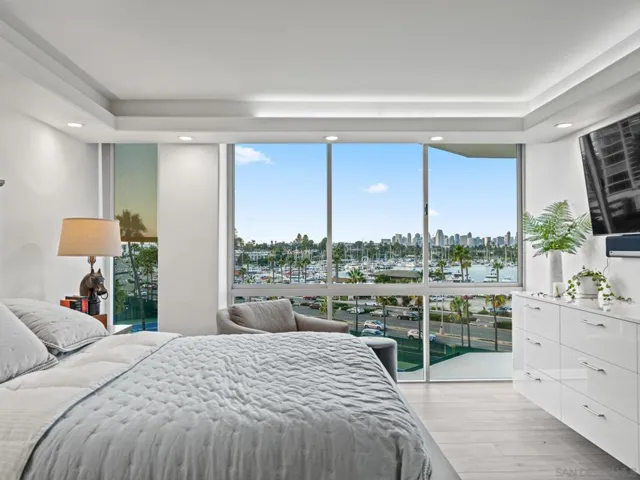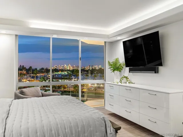 This home is perfect for a buyer seeking a large unit with an open floor plan and panoramic views of the Pacific Ocean, Hotel Del Coronado, the San Diego skyline, the bay, the golf course, and stunning sunsets. Experience luxury living in this stunning corner residence, each with its own private ensuite bathroom and a thoughtfully designed layout. Offered fully furnished with high-end designer pieces, the interiors have been curated with exquisite craftsmanship and style. Highlights include hand-crafted woodwork in the living room and bar, custom trim in the hallway and primary suite, handmade tile in the kitchen and bathrooms, and designer wallpaper accents. The chef’s kitchen features all-new GE Café Signature Collection appliances, and the unit has new windows, automatic blinds, new interior doors and casings, upgraded lighting and sconces, and a new washer and dryer. Perched in La Princesa, the newest and recently remodeled tower at The Shores, this one-of-a-kind home is complemented by beautifully renovated modern lobbies and hallways, offering a refined balance of classic elegance and coastal charm.