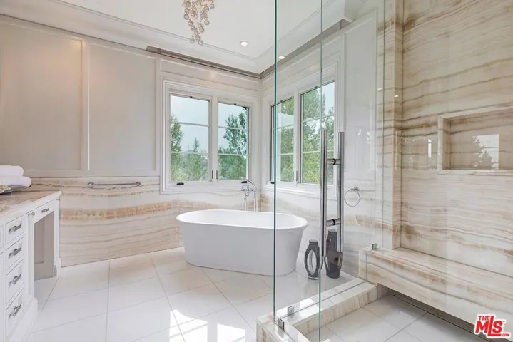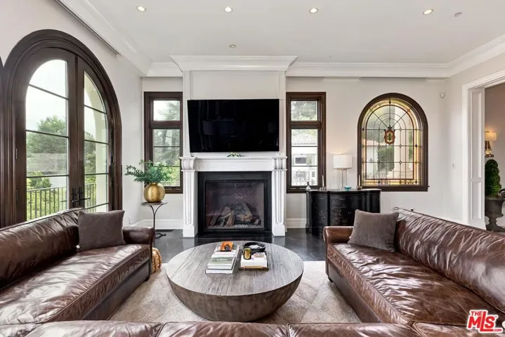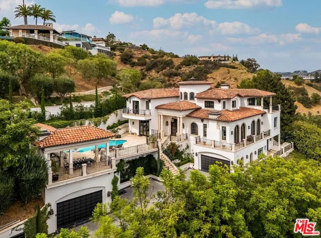 Experience the ultimate in privacy and luxury with this custom-built Bel-Air estate, showcasing designer finishes and meticulous attention to detail throughout. Enter this secluded oasis through a gated driveway leading to a spacious motor court that accommodates 5+ vehicles, plus two direct-entry 2-car garages. Spanning over 8,000 square feet, the home features 6 bedrooms and 9 bathrooms, along with a game room with bar, home theater, wine cellar, elevator, dedicated office, and a steam sauna on the lower level. The chef’s kitchen is outfitted with a butler’s pantry, Sub-Zero and Wolf appliances, Italian Borghini marble countertops, a large center island, and dual dishwashers. The luxurious primary suite includes a private sitting area with fireplace and opens to a large balcony offering stunning city and mountain views. It also boasts dual full bathrooms with heated floors and a generous walk-in closet. Thoughtful, high-end upgrades abound, including linear air conditioning, custom ironwork, solar panels, a gas and propane backup generator, central vacuum system, laundry chute, whole-house water filtration, five-zone HVAC, and a comprehensive security system with 16 cameras. The resort-style backyard is an entertainer’s dream, featuring a spectacular pool and spa with fire features, panoramic views, a cabana with full bathroom, and a fully equipped outdoor kitchen with Viking appliances, BBQ, and dishwasher. Mature landscaping envelops the entire property, ensuring complete privacy. Home is offered unfurnished.