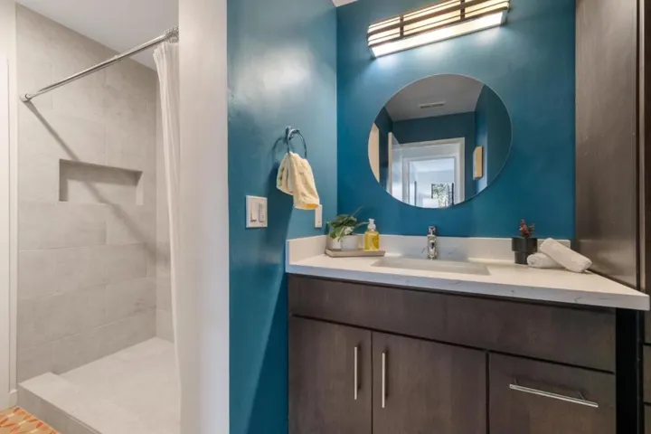 Prime lakeside location in park-like community. Enter to open-plan living and dining area featuring luxury vinyl flooring, electric fireplace, wide patio doors to patio and views of Almaden Lake. Kitchen equipped with Bertazonni high-end Italian induction range and microwave, granite counter and bar, Bosch dishwasher, and double-door Kitchen Aid refrigerator with filtered water dispenser. Remodelled bathroom comes with ample storage cupboards and vanity, tile floor, walk-in shower with dual shower heads, and industrial grade Maytag washer and dryer. Main bedroom is well proportioned with sliding barn door to walk-in closet, built-ins and separate door to bathroom area. Enjoy the patio and views of lake and Mount Umunhum, community pool, Alamitos trails, dog park, Oakridge Mall, Whole Foods, Trader Joes, Costco and easy access to 87 and 85. Assigned parking space directly in front of property entrance. Property photos are virtually staged.