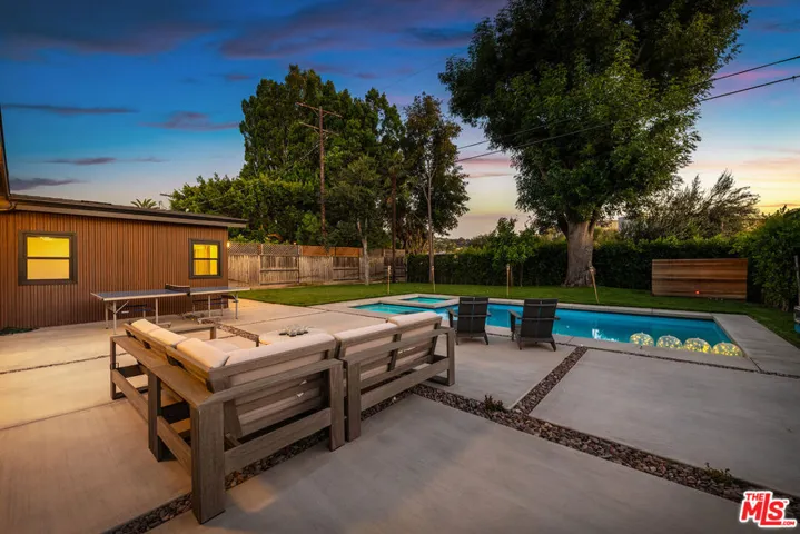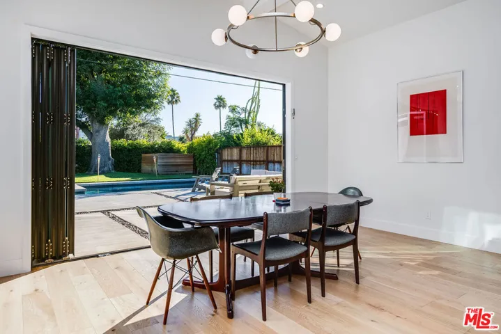 Welcome to this beautifully reimagined home, set on a renowned jacaranda-lined street in one of Sherman Oaks’ most sought-after neighborhoods. Sitting on an expansive 9,500+ sq. ft. lot, this 5BD/4BA residence was completely rebuilt in 2024 with meticulous attention to detail.Inside, elegant white oak floors, soaring 12-foot vaulted ceilings, custom cabinetry, and two oversized skylights create an airy, light-filled atmosphere. The chef’s kitchen features luxury appliances, a walk-in pantry, abundant storage, and a striking center island, seamlessly connecting to the main living area. Accordion glass doors open wide to the backyard, blending indoor and outdoor living.The primary suite offers a spacious walk-in closet and a spa-like en suite with a double vanity, freestanding soaking tub, and terrazzo floors.The resort-style backyard is an entertainer’s dream with a custom BBQ station, sparkling pool, spa, and ample space for gatherings.Perfectly located within the highly coveted Dixie Canyon Community Charter Elementary district and just minutes from The Shops at Sportsmen’s Lodge, Casa Vega, and Ventura Blvd dining, this home is the ultimate blend of comfort, convenience, and California living.