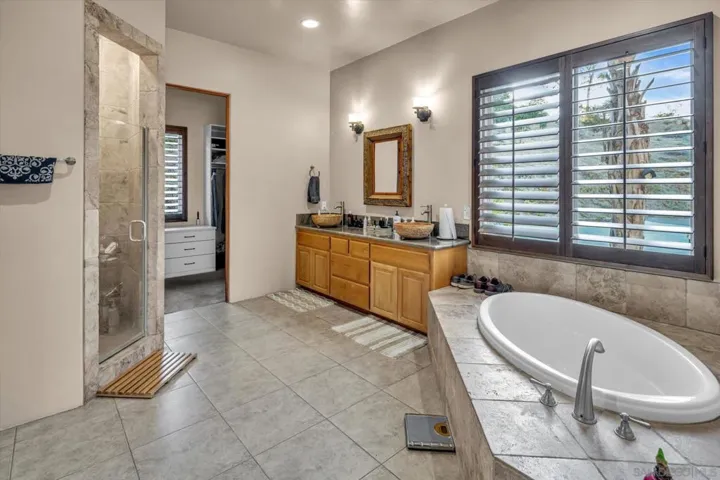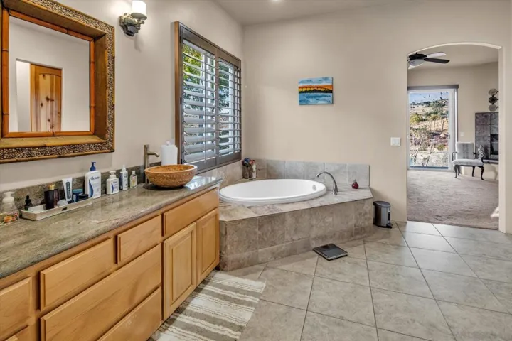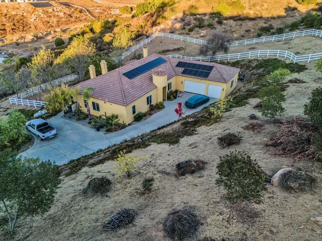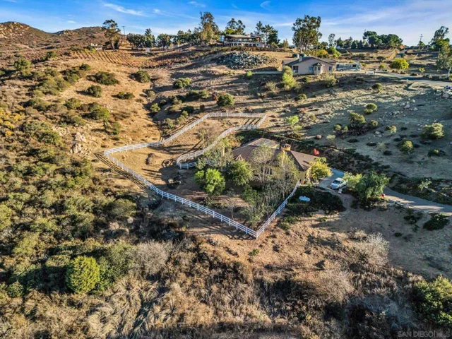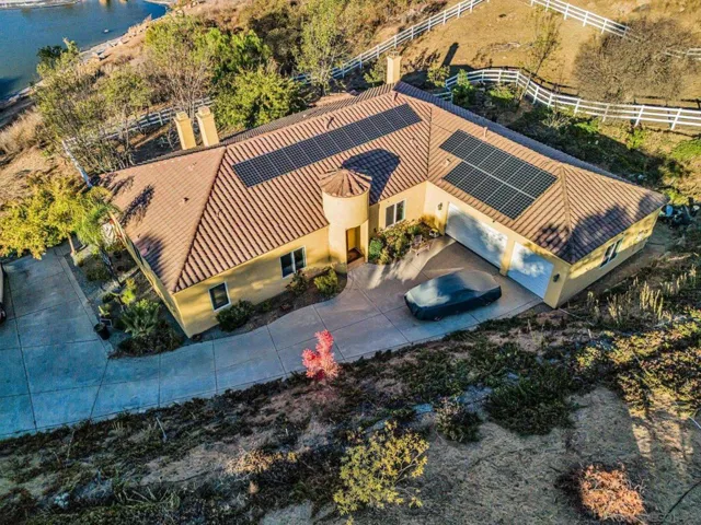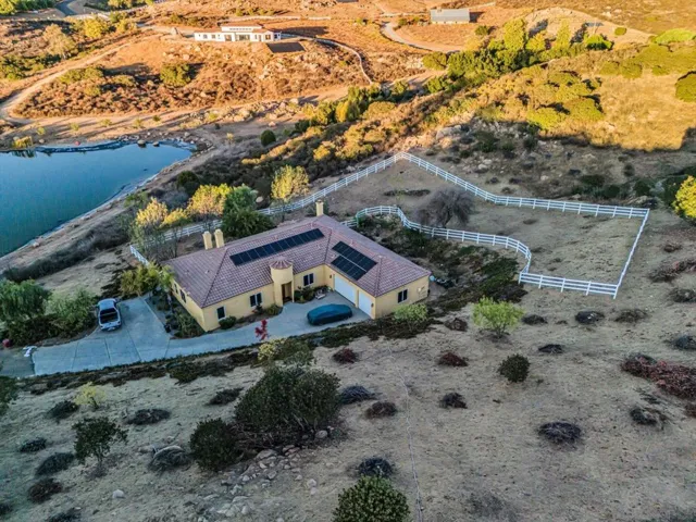 Ask About Our 2-1 Buydown – Stunning West End Ramona Retreat with Panoramic Views, Paid-Solar and Room to Grow! Serene sunrises and breathtaking sunsets await you at this exceptional 3.29-acre estate in Ramona’s highly desirable West End, just minutes from the region’s wine country. Built in 2005, this meticulously maintained 3,000 sq ft home offers a rare combination of privacy, elegance, and versatility—with no HOA, fully paid solar with Tesla battery backup, fast internet avail. and panoramic views of the surrounding hills and tranquil pond. Step inside to discover soaring, 10-foot-high ceilings, custom wood shutters, new Milgard windows, dual zone climate control, and 8-foot doors. Abundant natural light creates a welcoming, airy atmosphere. The gourmet kitchen is a chef’s dream, featuring granite countertops, built-in ovens, a large center island, and a drop-in gas range. Enjoy peaceful morning views from the breakfast nook and cozy evenings by the fire in the open concept living area. ASK ABOUT ARE 2-1 Buydown Finance Option. The private master suite is a true sanctuary with its own fireplace, walk-in closet, luxurious en-suite bathroom with dual stone vessel sinks, soaking tub, walk-in shower, and private outdoor entrance with serene pond views. On the opposite wing of the home, two generously sized bedrooms share a full bathroom, along with a conveniently located powder room. This thoughtfully designed home also offers multiple flexible living spaces, including a formal dining room, a spacious den or library with a third fireplace and stunning views – and an additional bonus room ideal for a home office, gym, or playroom. The large indoor laundry room includes a sink, counter space, and abundant storage. A three-car garage and expansive private driveway provide ample room for vehicles, RVs, or recreational toys. The outdoor spaces are just as impressive. The property includes a fully fenced backyard, ideal for a future pool or outdoor kitchen, as well as a three-rail vinyl-fenced area perfect for horses, animals, or agricultural use. With a sloping northern terrain, this property could potentially create the ideal climate conditions for a boutique vineyard—offering a chance to embrace the wine country lifestyle from the comfort of home. Additionally, a second-level pad to the west of the property offers further potential to build a guest house /ADU, shop, or use for additional parking including RV parking. This home features indoor and outdoor sprinklers, a durable tile roof, and a private well for ample water with no bill. With solar power, utility bills can be minimal or nonexistent, potentially saving you thousands of dollars per year which should help you in subsidizing the insurance costs. Wildlife sightings are common here, with wild birds, deer, and natural beauty on display year-round. At twilight, on the right night, the sky transforms into a breathtaking palette of colors, adding to the sense of peace and magic this home offers. This one-of-a-kind oasis invites you to relax, unwind, and enjoy the best of country living.