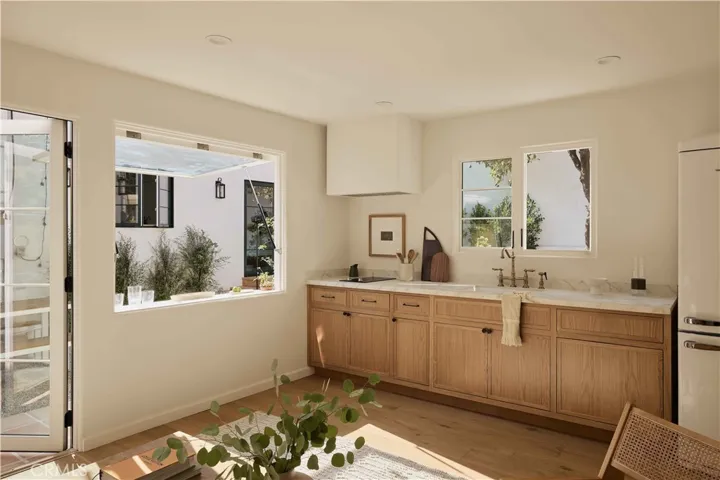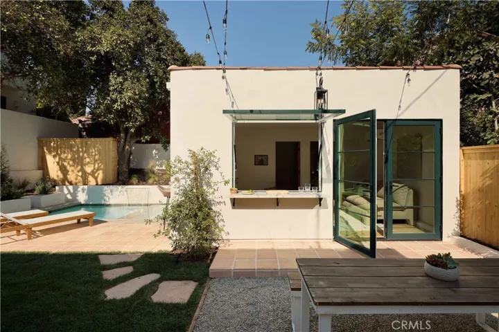 Welcome to Casa Feliz, a distinctive residence on Atwater Village’s most picturesque street. Set along tree-lined Glenfeliz Boulevard, the home blends preserved historic details with thoughtful updates, creating a space that feels both timeless and livable. The main house offers 3 bedrooms and 2 bathrooms, filled with character. Original front windows, arched entryways, and dramatic ceilings highlight its architectural history. The living room impresses with soaring ceilings and expansive windows, filling the space with light and volume. A bright dining room with Saltillo tile continues the theme with natural warmth, while the kitchen features custom cabinetry, Saltillo flooring, and a charming breakfast nook. The guest bathroom pairs Zia tile with plaster walls for a refined finish. The primary suite includes a spacious bedroom, an oversized walk-in closet, and a generous en-suite with a free-standing tub, walk-in shower, dual vanity, Saltillo flooring, and plaster walls that lend an earthy, organic tone. The detached 1-bedroom ADU mirrors the finishes of the main house, offering a seamless extension of style, ideal for guests, workspace, or entertaining. Outdoors, a private pool with spa and water feature creates a serene retreat for relaxation and entertaining. Located on Glenfeliz Blvd, widely regarded as Atwater’s most beautiful street, Casa Feliz is surrounded by mature trees and historic homes, just moments from local cafés, restaurants, and shops along Glendale and Los Feliz Boulevards. Casa Feliz delivers the best of Atwater living, authentic character, thoughtful design, and an unmatched location.