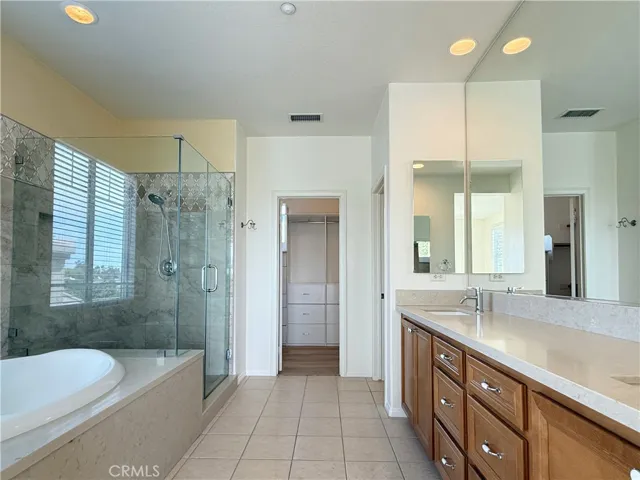Upstairs, the primary suite serves as a private retreat with a fully renovated, spa-inspired bathroom including a soaking tub, sleek glass-enclosed shower, dual vanities, and a walk-in closet with custom built-ins. A downstairs bedroom with full bath creates the perfect setup for guests or multi-generational living.