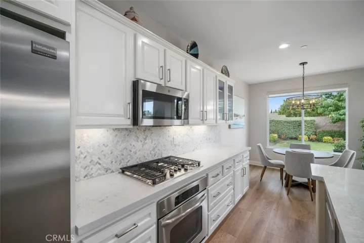 Step inside to discover an inviting floor plan with luxury vinyl plank flooring, bright white cabinetry, and quartz countertops. The spacious kitchen features a pantry and a charming buffet nook—ideal for a coffee bar or extra serving space.