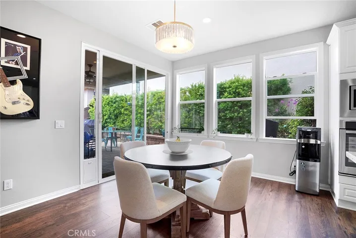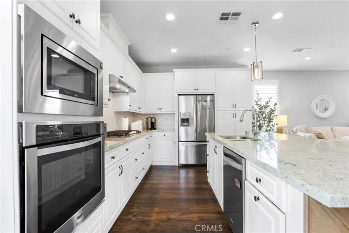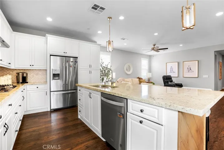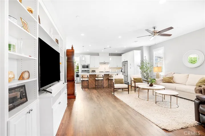 Beautiful Western Ranch Model detached single family home in the highly sought after 55 plus community of Auberge at Del Sur. The home has an additional room that can be use as a 3rd bedroom, office, or your choice. Open floor plan joining the kitchen, dining area and great room. The Kitchen boasts of a beautiful granite island & countertops, stainless steel appliances, Upgraded Kitchen BackSplash, Laminate Floors and plenty of European-style white thermofoil cabinetry and raised panel doors, Built-In Entertainment Center as well as built-in office Desk with Cabinets. This amazing home comes with the upgraded Covered Patio with automatic awning, ceiling fan w/ light, laundry room with a sink & side by side washer and dryer, pre-wired for solar panels, tankless water heater, Garage with Epoxy Flooring, low maintenance backyard with a relaxing water fountain, backyard fully paved, neutral interior paint, whole house fire sprinklers. A 2 car garage that offers storage cabinets and overhead storage racks. Auberge residents have full access to all of the Del Sur amenities that include 14 parks, 11 pools and miles of walking trails. This community has an impressive clubhouse that offers a fitness center, resort style heated swimming pool with spa, dog park, walking trails, bbq area, pickleball courts, and a tot lot for the visiting family. Auberge is center to many shopping centers and entertainment, fast and easy access to highways.