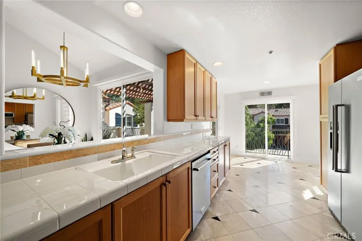 NEWPORT COAST LUXURY VILLA Located in the prestigious gated community of TROVARE, this quiet corner lot offers lush, tranquil tree views. The open floor plan features soaring ceilings, sun-filled windows, and abundant natural light, creating an inviting living environment.The home has been freshly painted and upgraded with brand-new laminate wood flooring throughout, enhancing its modern, luxurious feel. The bright kitchen showcases a new stainless steel appliance, a spacious eat-in breakfast nook, and a separate dining area, both opening onto a large courtyard balcony perfect for entertaining.