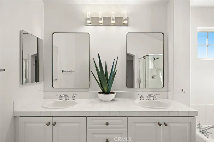 This spacious residence offers three bedrooms and two-and-one-half bathrooms, including a master suite with vaulted ceilings, dual sinks, and a soaking tub. The living room is centered around a cozy fireplace, while the inside laundry area comes complete with a washer and dryer. The attached direct-access 2-car garage provides ample storage cabinets.