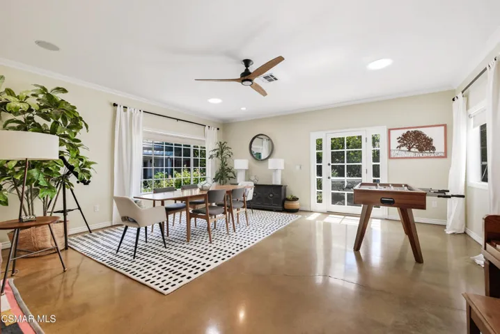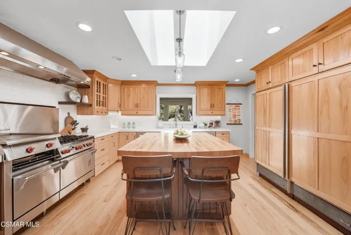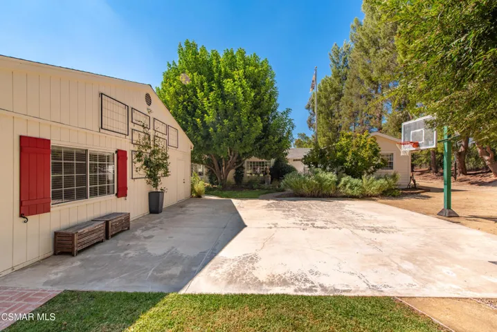 Nearly impossible to find, this private, gated estate in charming Old Agoura offers a rare blend of refined living and country charm. Set on 1.5 acres of flat land, the property features a sprawling single-story 4,050 sq ft main residence paired with a generous 1,190 sq ft single-level guest house. From the moment you arrive, the home exudes warm sophistication. Wide hickory floors anchor inviting living spaces, while the chef’s kitchen–appointed with Wolf and Sub-Zero appliances–flows into a covered back porch overlooking a serene English garden. The versatile floor plan offers room for every chapter of life: a richly designed library/media room, a cheerful playroom near the kitchen, a private guest suite with its own bath, and even a walk-in wine closet for your collection. The primary suite is a true sanctuary, complete with dual bathrooms, dual walk-in closets, and an adjoining flex space ideal for a nursery or home office. Life here embraces a simpler rhythm without compromising luxury. Sip coffee while gathering eggs from your hens, enjoy supper on the porch, then linger by the firepit under a blanket of stars. The cedar-and-steel 4-stall barn offers endless possibilities–boarding horses, goats, or minis–or simply use it as versatile space for hobbies and storage. With an extra wide driveway leading to the back of the property, there’s plenty of room for an RV, boat and trailers. While private and serene, the home is only minutes to local shopping, dining, award-winning Las Virgenes schools, and a 4,000-acre park–where hiking, cycling, and horseback riding await. With 6 bedrooms, 6.5 bathrooms, and two distinct single-story residences, this property is uniquely valuable and quite a find in today’s market. Note the 1,190 sq ft guest house is a permitted structure, per seller (not permitted as an ADU or Guest House) and the parcel is 1.47 acres.