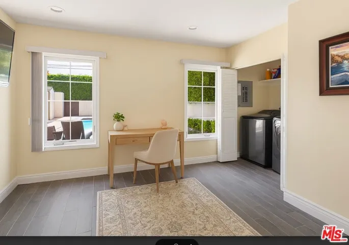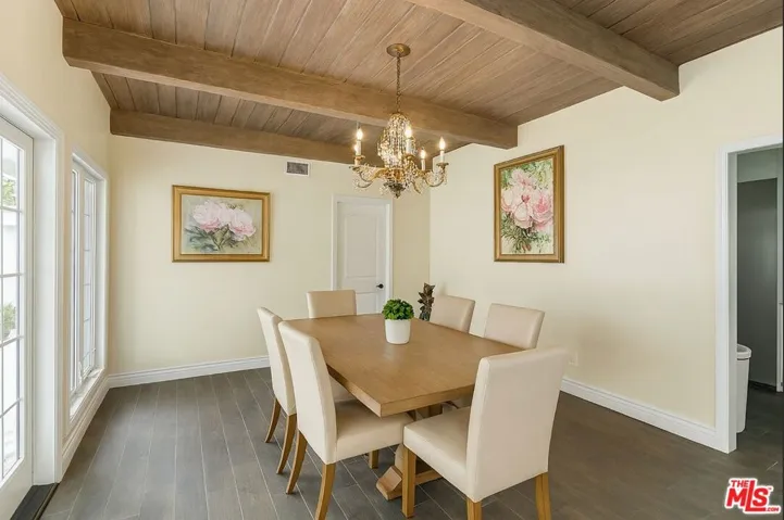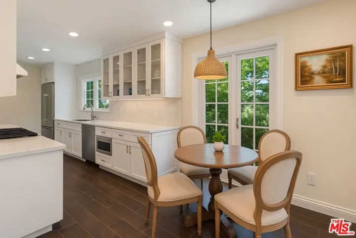 Tucked away in one of the most sought-after pockets of South Beverly Hills, 207 North Doheny is a beautifully updated two-story traditional home that perfectly balances classic charm with modern comfort. Surrounded by tall ficus hedges, the home feels like a private escape, just minutes from world-class shopping, dining, and located within the prestigious Beverly Hills Unified School District. Inside, a grand foyer welcomes you into a spacious formal living room with high, beamed ceilings, a striking fireplace, and French doors that lead out to a large, covered brick patio ideal for indoor-outdoor living. The formal dining room is warm and elegant, with wood-paneled ceilings and more French doors that fill the space with light. The remodeled kitchen blends style and function, featuring designer finishes and a cozy breakfast nook. The layout is thoughtfully designed, with a guest or maid’s room on the main floor and three bedrooms upstairs. The primary suite feels like its own retreat, complete with a walk-in dressing room and a beautifully renovated bathroom. Throughout the home, wide-plank wood floors and refined details create a cohesive, welcoming feel.Outside, the backyard is a true oasis expansive and lush, with both open and covered patios, a sparkling pool, and room to relax or entertain. A detached, drive-through two-car garage adds both charm and practicality, letting you pull through without backing out. With spacious living areas, top-rated schools, and a backyard built for memories, this is a place to truly call home.