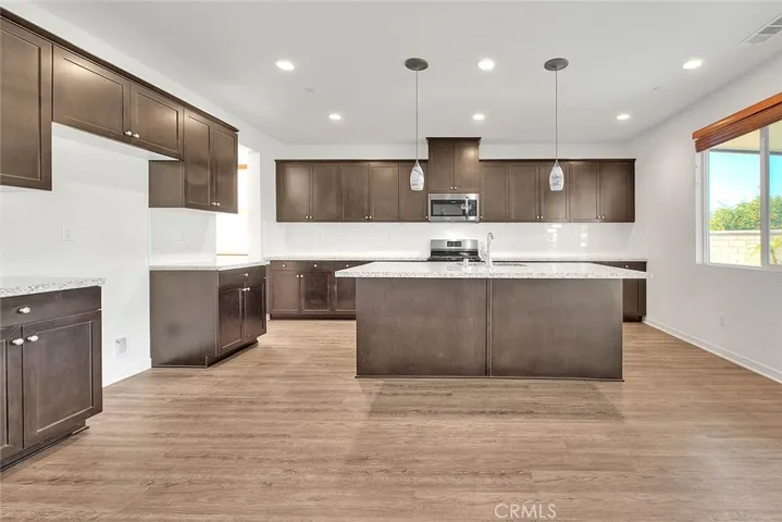 This beautiful residence is situated in a tranquil community in Mentone, offering stunning mountain vistas. It boasts 4 bedrooms and 3.5 bathrooms, encompassing 3,206 square feet of living space on a generous 10,667 square foot lot. The property includes numerous upgrades. There is a separate in-law or maid’s quarters featuring its own entrance, living area, bedroom with a walk-in closet, bathroom with a walk-in shower, kitchenette, and laundry room closet. This area is ideal for guests or as a potential source of income. The main house showcases a bright and open floor plan, with a spacious kitchen that includes an oversized island with granite countertops, connecting to a large great room. Additional features include a fully paid solar system, a tankless water heater, luxury vinyl plank flooring on the lower level, and carpeting on the upper level. The indoor laundry is conveniently located upstairs, along with ample storage options throughout the home. This model also features a sizable loft upstairs, which can serve as a game room, office, or den. The expansive primary bedroom includes a large walk-in closet, while the primary bathroom is equipped with a sizable bathtub and a separate shower. The other two bedrooms are also generously sized, each with large walk-in closets. The finished two-car garage offers one side that is extra deep. The beautifully landscaped backyard includes a large, oversized shed for ample storage. A covered patio with stamped concrete provides plenty of space for relaxation and hosting wonderful gatherings. The property enjoys easy access to freeways, shopping, and dining. A visit is essential to fully appreciate this remarkable home.