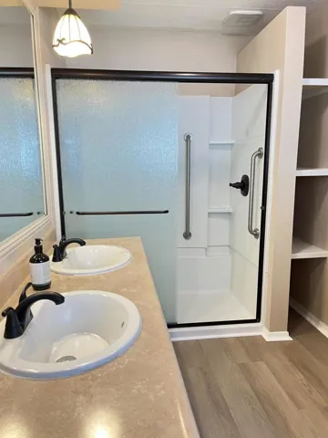 -Lease option available- (Virtual tour available on tiktok: @realtorjonathanr)Welcome to this beautifully maintained 2 bedroom, 2 bathroom manufactured home on a permanent foundation (433a), offering 1,440 sq. ft. of living space and pride of ownership throughout. Located in the sought-after Palm Desert Greens, a 55+ guard-gated community, this property qualifies for traditional financing and comes with access to resort-style amenities.Step inside to discover an open floor plan that creates a welcoming flow between the living, dining, and kitchen areas. The home is filled with thoughtful upgrades, including double-pane windows with shutters, ceiling fans in bedrooms and common areas, and a well-maintained HVAC system that provides excellent airflow. Flooring is a tasteful mix of wood panels and plush carpet in the bedrooms, adding both style and comfort.The kitchen is a highlight, featuring abundant counter space, all appliances included, and seamless connection to the dining and living areas–perfect for everyday living and entertaining. A bonus room off the side makes an ideal home office, hobby space, or guest retreat.Both bathrooms offer convenient walk-in showers, adding ease of use and modern functionality.Outside, this property shines. It’s the only home on the street with a backyard, designed for entertaining with a low-maintenance astro turf lawn (no mowing, green year-round, water-efficient) and plenty of space for gatherings. The front patio offers another inviting spot for relaxing or hosting guests. Additional features include:Side yard faucet for easy gardening, pet care, or outdoor clean-upStorage shed for your toles or extra storage with lightingSolar system to help keep electricity bills low year-round-Palm Desert Greens Amenities-Residents of Palm Desert Greens enjoy:An 18-hole executive golf course3 pools and spasA clubhouse with restaurant and barTennis, pickleball, and bocce courts24-hour guard-gated security and low HOA duesThis home is a rare gem–beautifully cared for, thoughtfully upgraded, and move-in ready. Don’t miss your chance to make it yours!Lease Option Available.