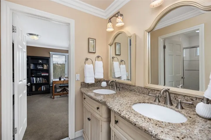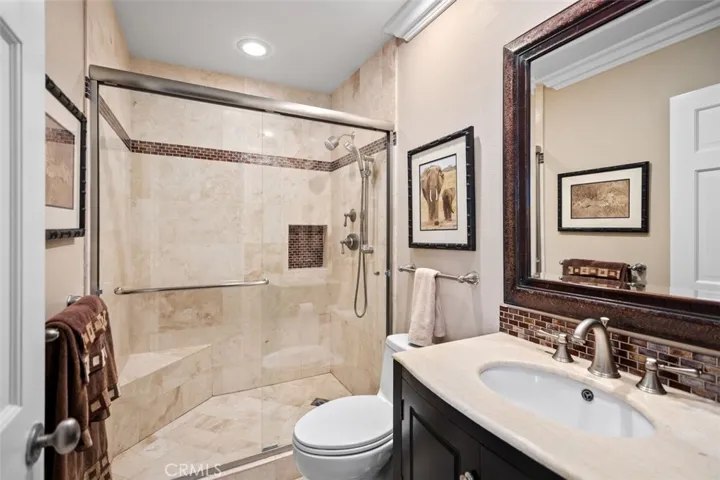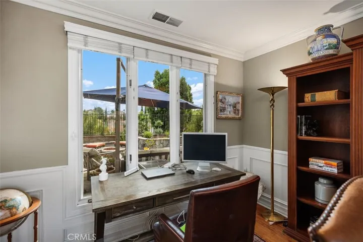 RARE OPPORTUNITY – Situated within the prestigious, guard-gated enclave of Canyon Crest, 22187 Westcliff is a custom home that epitomizes refined elegance and timeless luxury, blended with an inviting warmth that welcomes all. This exceptional estate, set on a serene cul-de-sac, is a rare gem in a community renowned for its resort-style amenities. Striking architecture and manicured grounds, framed by a spacious motor court, create a captivating first impression. Inside, East Coast grandeur blends with California’s coastal charm. Exquisite custom millwork, opulent finishes, travertine floors, and curated details craft a luxurious yet comforting sanctuary. Spanning 4,800 square feet, this home is ideal for multi-generational living. Five spacious bedrooms and 4.5 elegant bathrooms ensure comfort. A private upstairs apartment suite—with a bonus room, kitchenette, full bath, bedroom, walk-in closet, and storage—offers versatility. The primary suite, reached via a graceful circular staircase, is a tranquil retreat rivaling top hotels. A spacious downstairs guest suite with a private ensuite bath and separate entrance adds convenience. Meticulous upgrades shine throughout. The chef’s kitchen inspires culinary creativity, while custom bookshelves, wainscoting, tray ceilings in the living room, and beamed ceilings in the family room elevate the ambiance. Milgard dual-paned windows and French doors flood the space with light, and paid solar panels generate surplus energy yearly. The oversized three-car garage, with new epoxy flooring, provides ample space. Outside, a remodeled pebble spa, firepit, and seating areas form a private oasis for al fresco dining and entertaining. Canyon Crest’s amenities elevate daily life: tennis courts, three pools, sport courts, a playground, a gym, a clubhouse, a billiards room, and vibrant social events. Membership at Lake Mission Viejo enriches your lifestyle with recreation and relaxation.