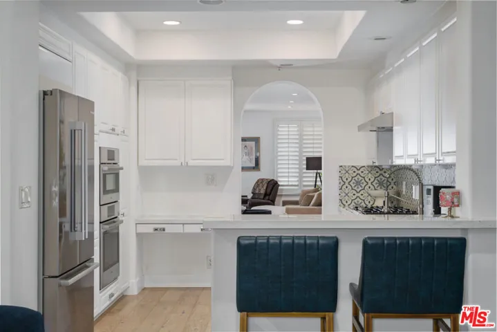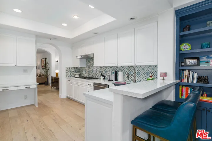 Stunning Brentwood Condo- Modern Elegance in Prime Location! Experience refined living in this beautifully updated 1,875 sq ft, 2-bedroom, 2-bath residence at the prestigious Beverly Court. Freshly installed new engineered hardwood flooring flows throughout, creating a warm and inviting ambiance. The fully updated kitchen features sleek stainless steel appliances and quartz countertops. Both bathrooms have been exquisitely renovated with modern fixtures, designer tiles, and spa-like finishes. Relax by the updated fireplace mantle, a focal point in the expansive living area, or entertain at the stylish custom-built bar, ideal for gatherings. Additional highlights include recessed lighting, generous closet space with built-in organizers, and in-unit laundry. Residents enjoy a gated parking garage with two reserved spaces, plus access to a community pool and serene courtyard. Located just one block from vibrant Brentwood Village, with its premier dining, boutiques, and cafes, and minutes from UCLA, the Getty Center, and West LA’s finest attractions. This move-in-ready gem offers a rare blend of modern upgrades and an unbeatable location don’t miss this Brentwood treasure!